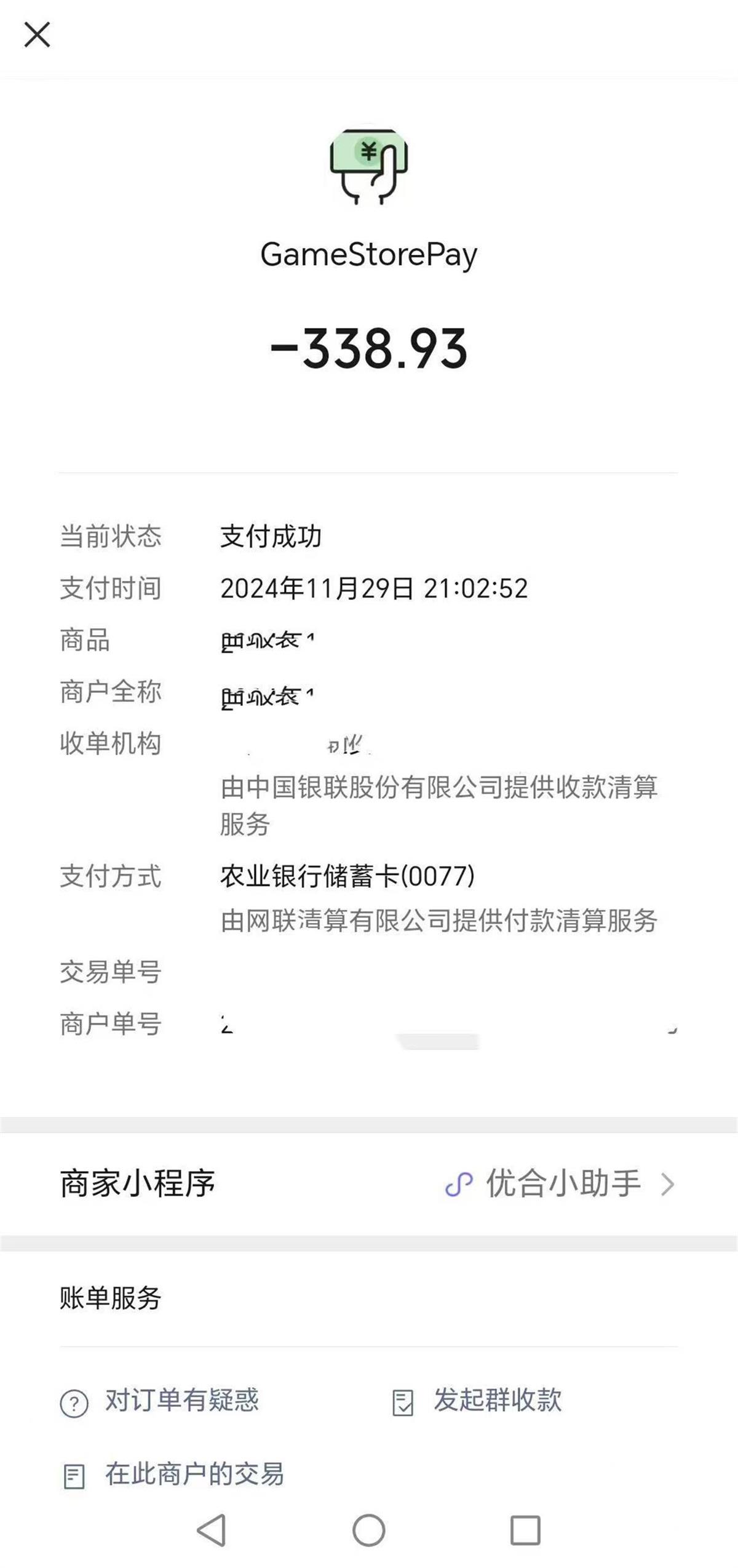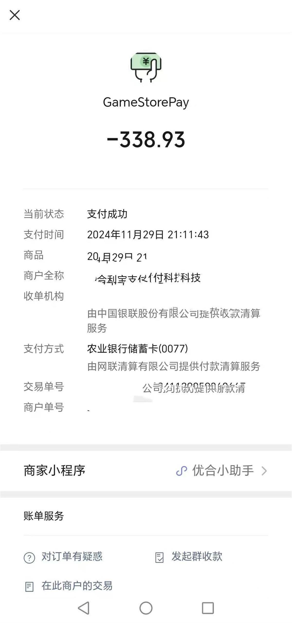 “问了娃才知道,这款游戏未在中国境内提供游戏服务,于是找了第三方代充平台进行充值,前后一共充了3000多元。”廖女士表示,“未成年人在未经家长的许可下,在代充平台上进行多笔消费充值,这真的合理吗?”