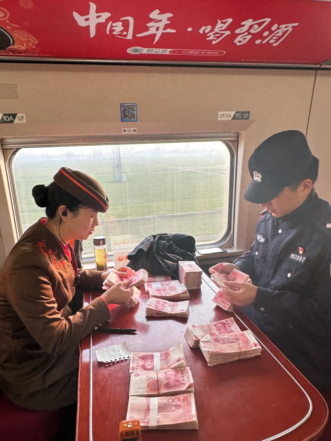 列车长杨茜得知后,立刻呼叫乘警长进行开包检查,并联系孝感北站请求调取监控寻找失主。“看到这么多现金,我们能够想象到乘客焦急的心情,经过近一个小时的查找终于与失主取得了联系。”列车长杨茜说。