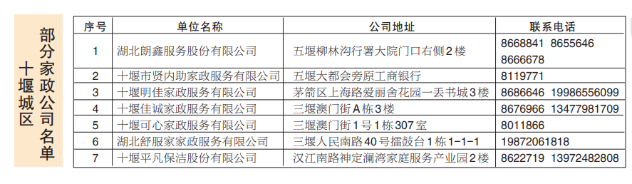 记者从十堰明佳家政服务公司、湖北朗鑫服务股份有限公司等市城区多家家政服务公司了解到,各公司春节前的订单也已爆满,保洁人员供不应求。