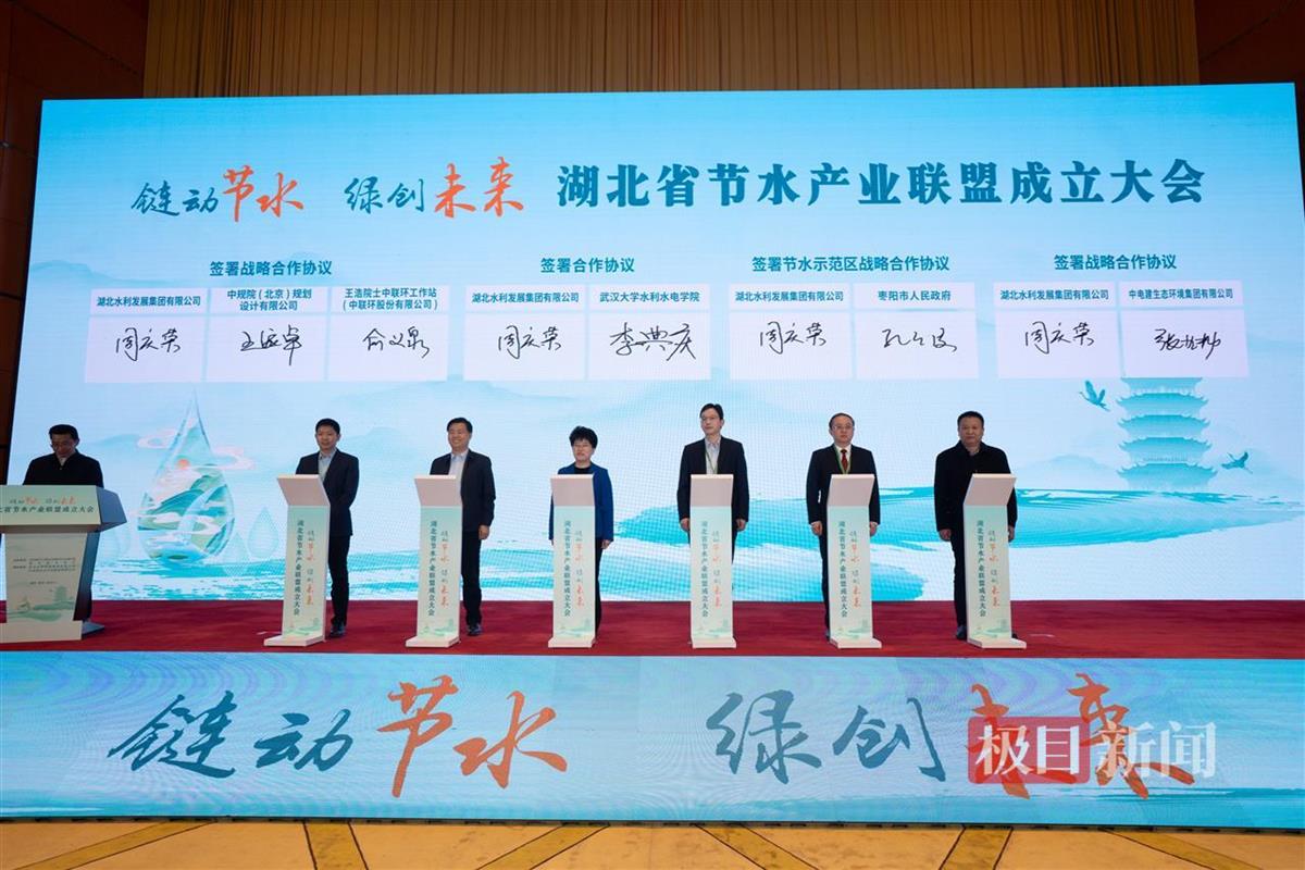 联盟成立大会上,湖北水发集团党委书记、董事长周庆荣以《共建节水产业生态链 共赴绿色美好新未来》为题作交流发言。同时,湖北水发集团与武汉大学水利水电学院、中联环股份有限公司、中国城市规划设计研究院、中电建生态环境集团有限公司、枣阳市人民政府等单位,成功签约达成合作。
