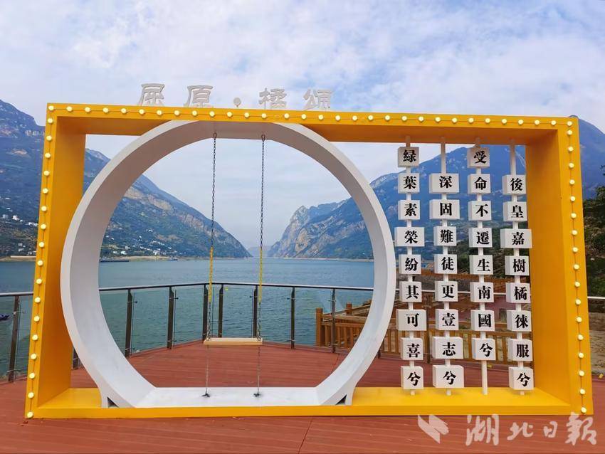 2024年,在省交通运输厅指导下,秭归县港航部门创建美丽乡村渡口,打造“美丽宜渡”品牌,推进全县乡村渡口提档升级。新滩渡口升级改造融合地域特色,橙子小屋外观整体呈桃叶橙造型,鲜亮的橙色在江边格外引人注目。橙子小屋还配备了桌椅与自助售卖机,屋外设有观景平台与合影秋千,游客在等待渡船的同时,还能一览峡江美景。“新渡口让人赏心悦目,还有屈原故里特色,可欣赏峡江美景。”屈原镇居民孙群说。