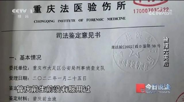 为了排除各种可能性,法医还对曾庆前的血液做了毒性分析,经过许久的调查,均未发现曾庆前受到二次伤害的情况。因此,警方才判断曾庆前的死亡与那起车祸有关。