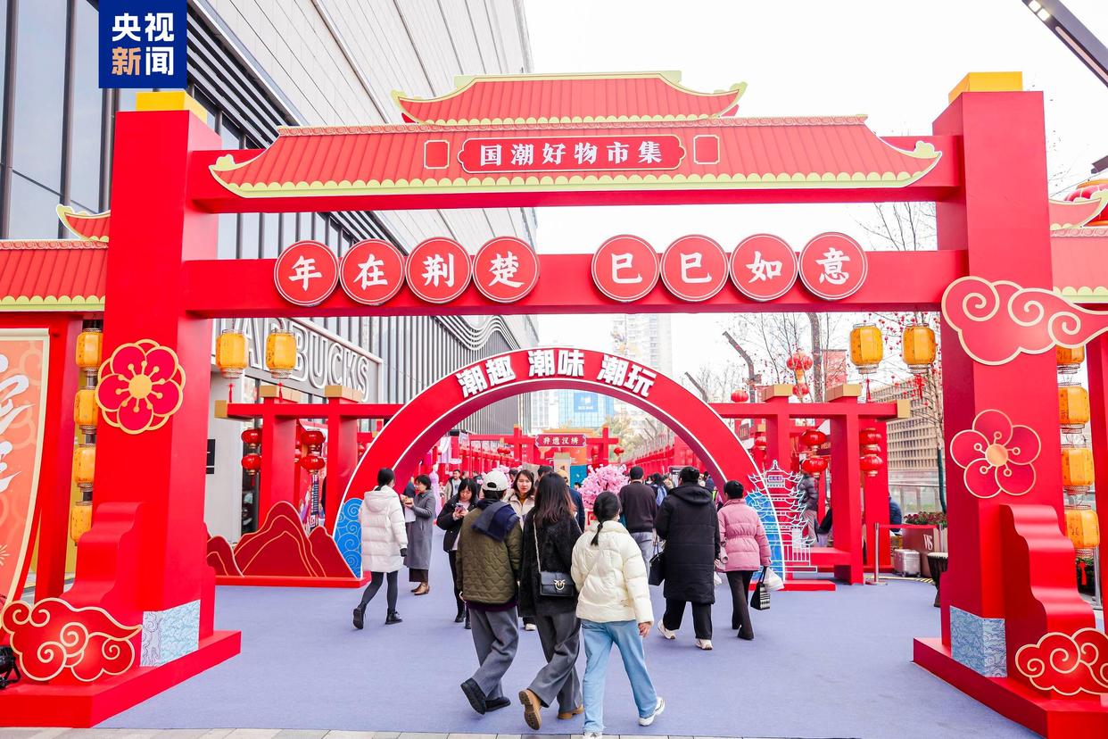 此次活动还将连续三天举办“年在荆楚 巳巳如意”国潮好物市集,湖北美食、非遗展演吸引了大批市民和游客。