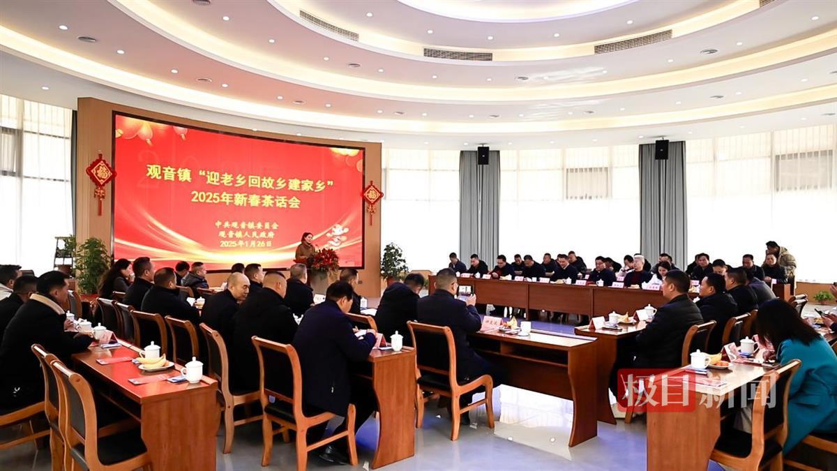 在乙巳蛇年春节即将到来之际,观音镇党委政府为进一步凝聚各方力量,助力乡镇提质提速发展,精心组织召开了“迎老乡·回故乡·建家乡”成功人士座谈会,诚挚邀请到40余名省内外观音籍成功人士,与该镇党委政府班子成员、22个村党支部书记欢聚一堂,庆新春佳节、话家乡变化、叙桑梓情谊、谋发展大计。