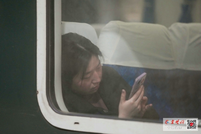 车窗内,有人低头看着手机,看着家人的照片。