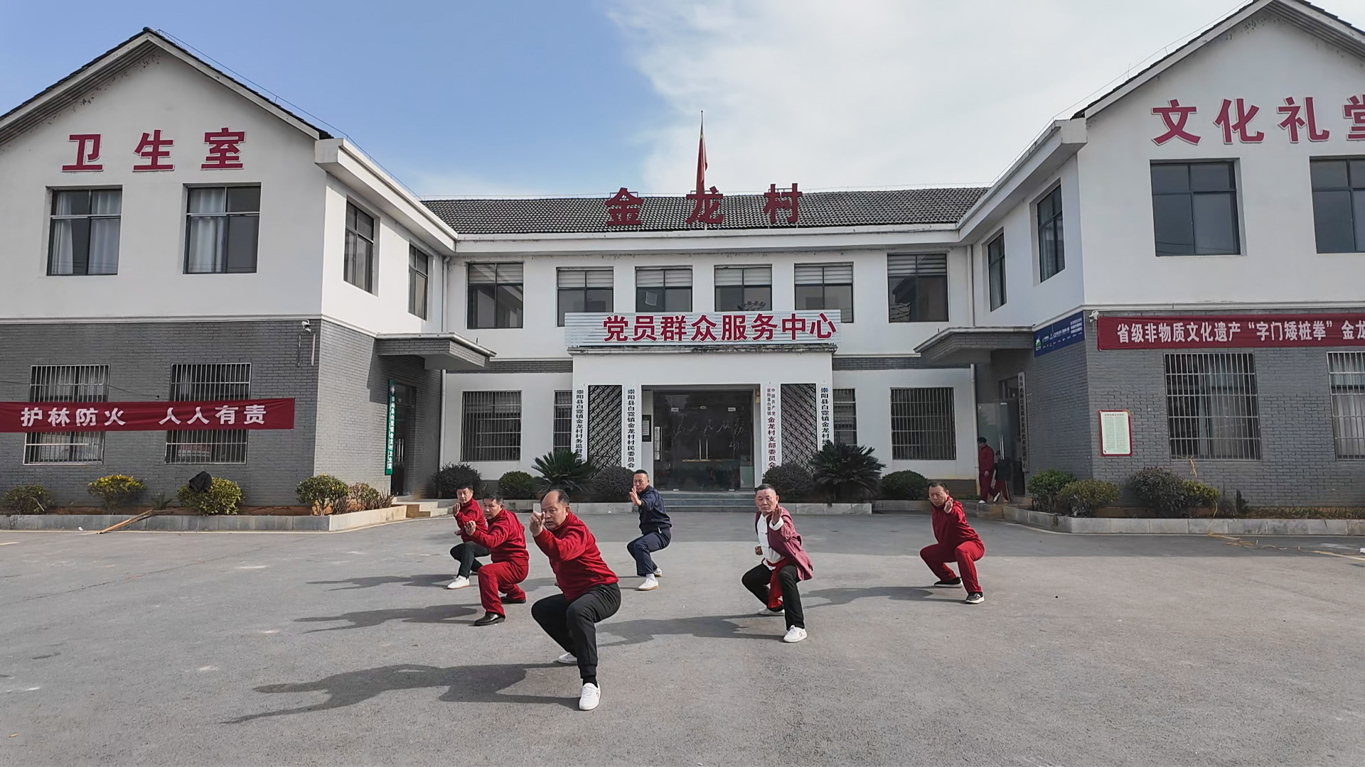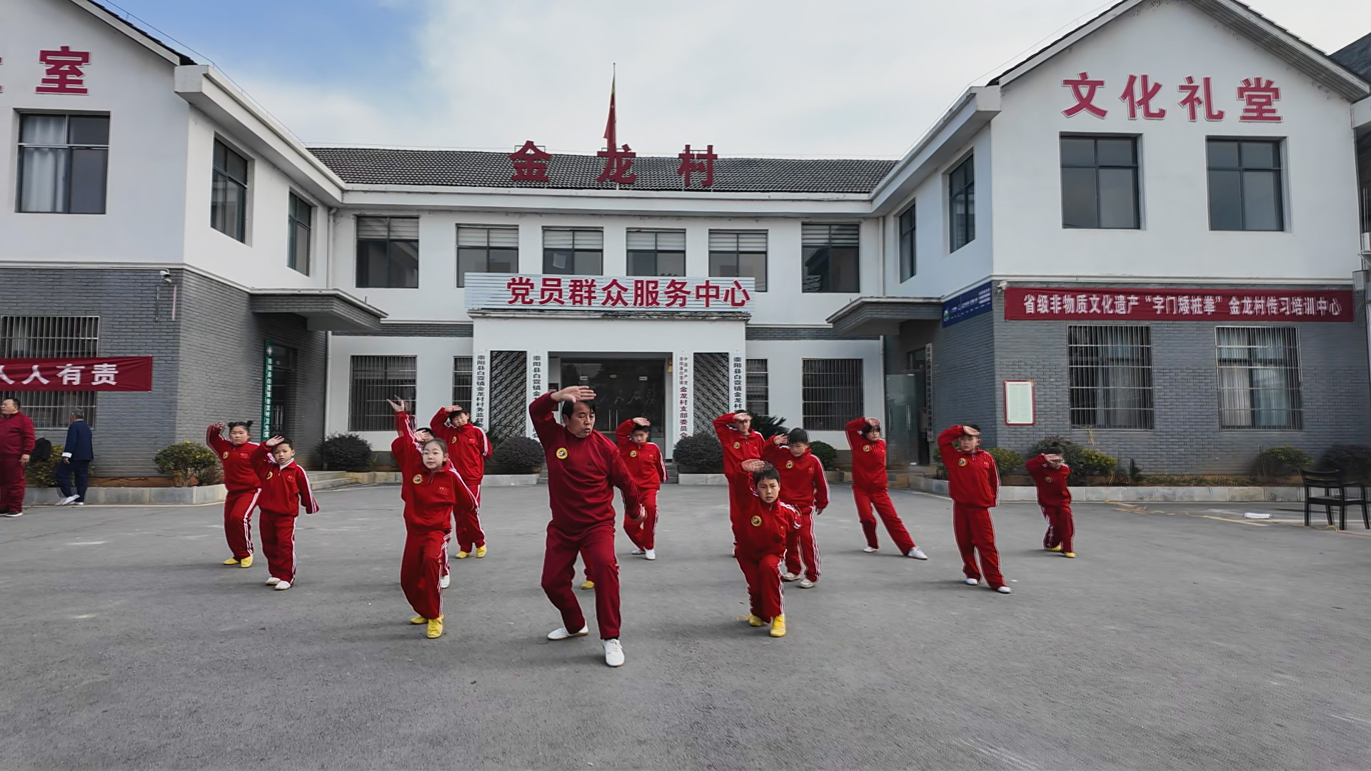 为了更好地传承字门矮桩拳,让青少年更加了解非遗、爱上非遗,金龙村把党员群众服务中心的文化礼堂“让”出来作为武术培训班,给孩子们提供学习、训练的平台。