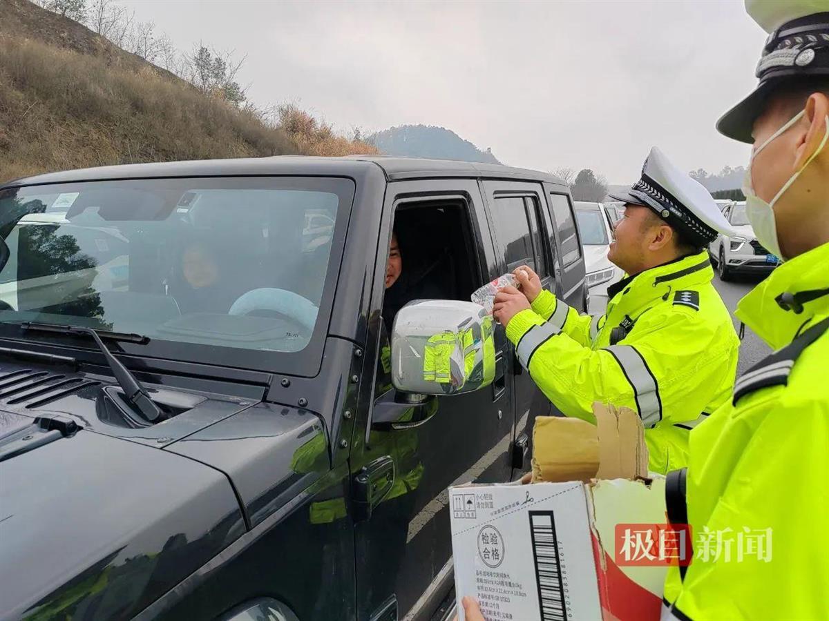 湖北高速交警二支队阳新大队民警在大流量路段为过路群众提供便民服务(通讯员供图)