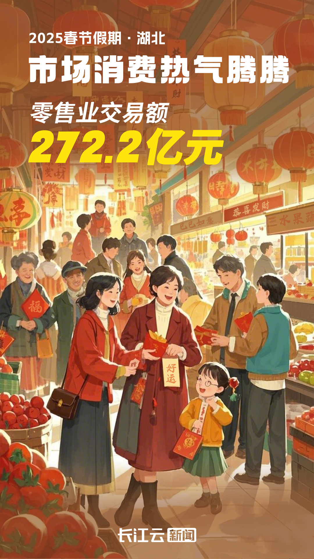 春节期间各地累计开展促消费活动600余场次,全省零售业交易额272.2亿元,餐饮业交易额41.1亿元,同比分别增长4.8%、8.2%;新建商品房销售面积增长24.5%;新一轮“惠购湖北”消费券累计核销金额8853万元;春节假期,全省家用电器店、电子商品店累计实现交易额分别同比增长33.44%、34.23%。