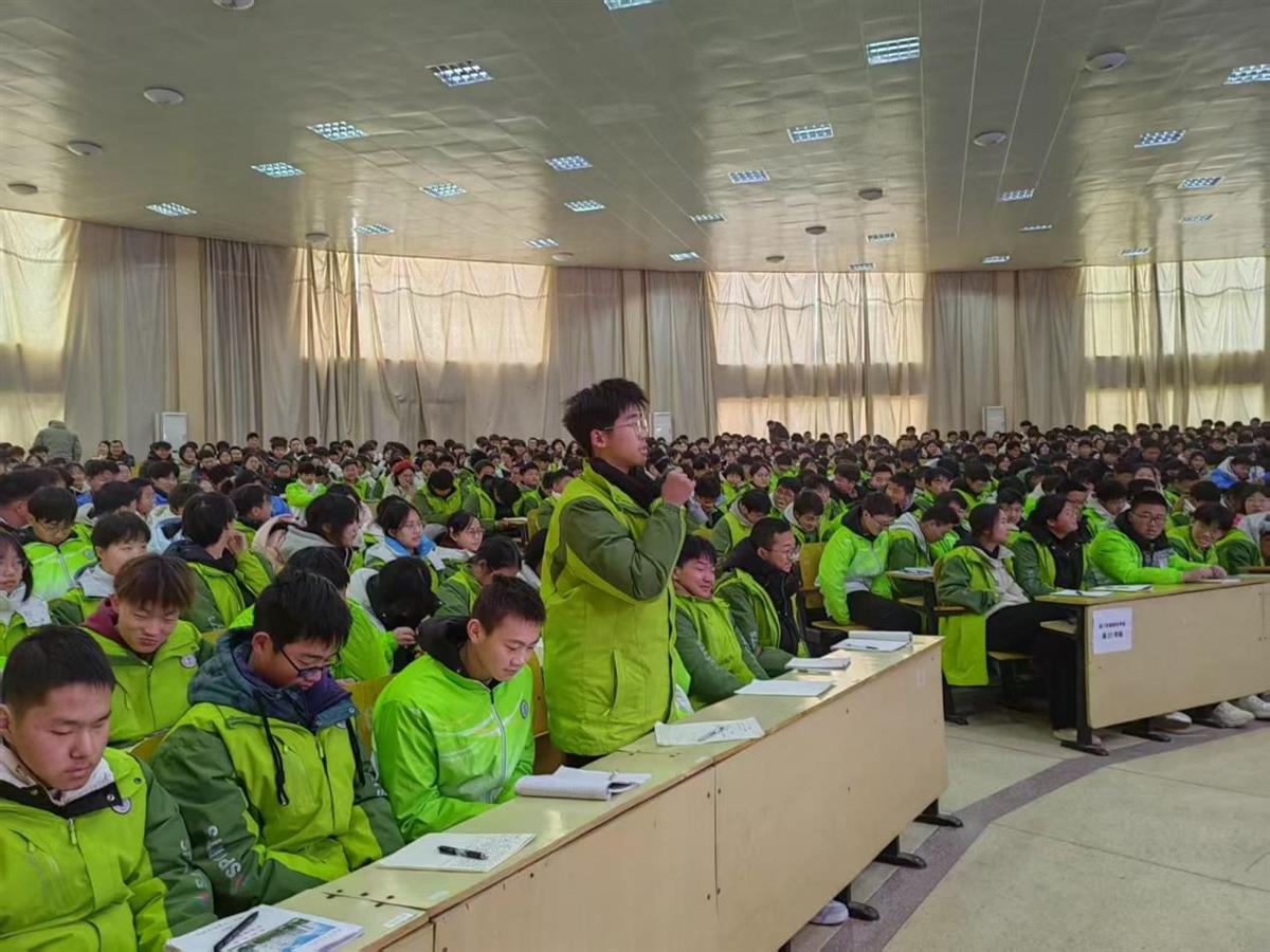 在讲座过程中,同学们全神贯注地聆听,不时爆发出热烈的掌声。她还传授了逆袭的学习方法和积极的心态调整技巧,帮助同学们更好地应对学习和生活中的压力。她说逆袭的本质是:别乱想,去狂做。路径是:用学习改变眼界,用眼界指引行动,用行动改变命运。讲座尾声,部分同学还主动上台,高喊励志口号,大胆说出目标学校,表达自己的信心和决心。