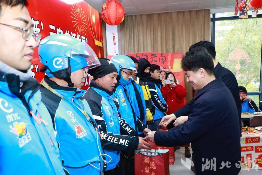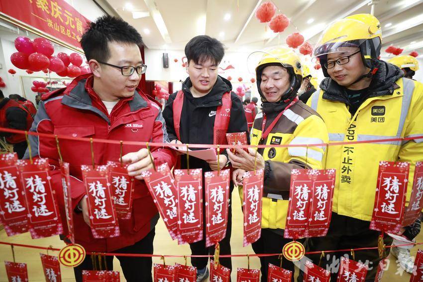 武汉市洪山区玫瑰湾社区工会驿站张灯结彩,传统民俗韵味十足。外卖配送员、快递员、环卫工人等50余人齐聚一堂,围坐一起品汤圆、吃糖葫芦,在猜灯谜、投壶、夹乒乓球等趣味游戏中放松身心。快递员黄多一句“希望新的一年,大家接单就像我投壶一样,全部命中”,引得现场阵阵掌声。