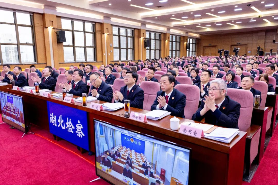 会议强调,2025年,全省检察机关要坚持以习近平新时代中国特色社会主义思想为指导,深入学习贯彻党的二十大和二十届二中、三中全会精神,全面贯彻习近平法治思想、习近平总书记考察湖北重要讲话精神,紧扣“奋勇争先、建成支点、谱写新篇”的使命任务,强化支点意识、抬升工作标杆,以专项工作为牵引推动全部检察工作向支点建设聚焦聚力,以开展“干部素质和办案质效提升年”活动为抓手做实“高质效办好每一个案件”,依法全面履职、优化检察管理、深化检察改革、激发科技赋能、完善检务保障、锻造过硬队伍,以更高定位、更高标准、更高要求推进检察工作,为支点建设贡献更大检察力量。