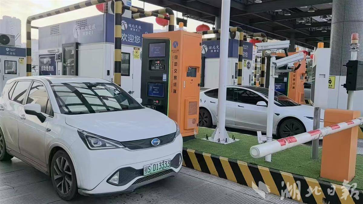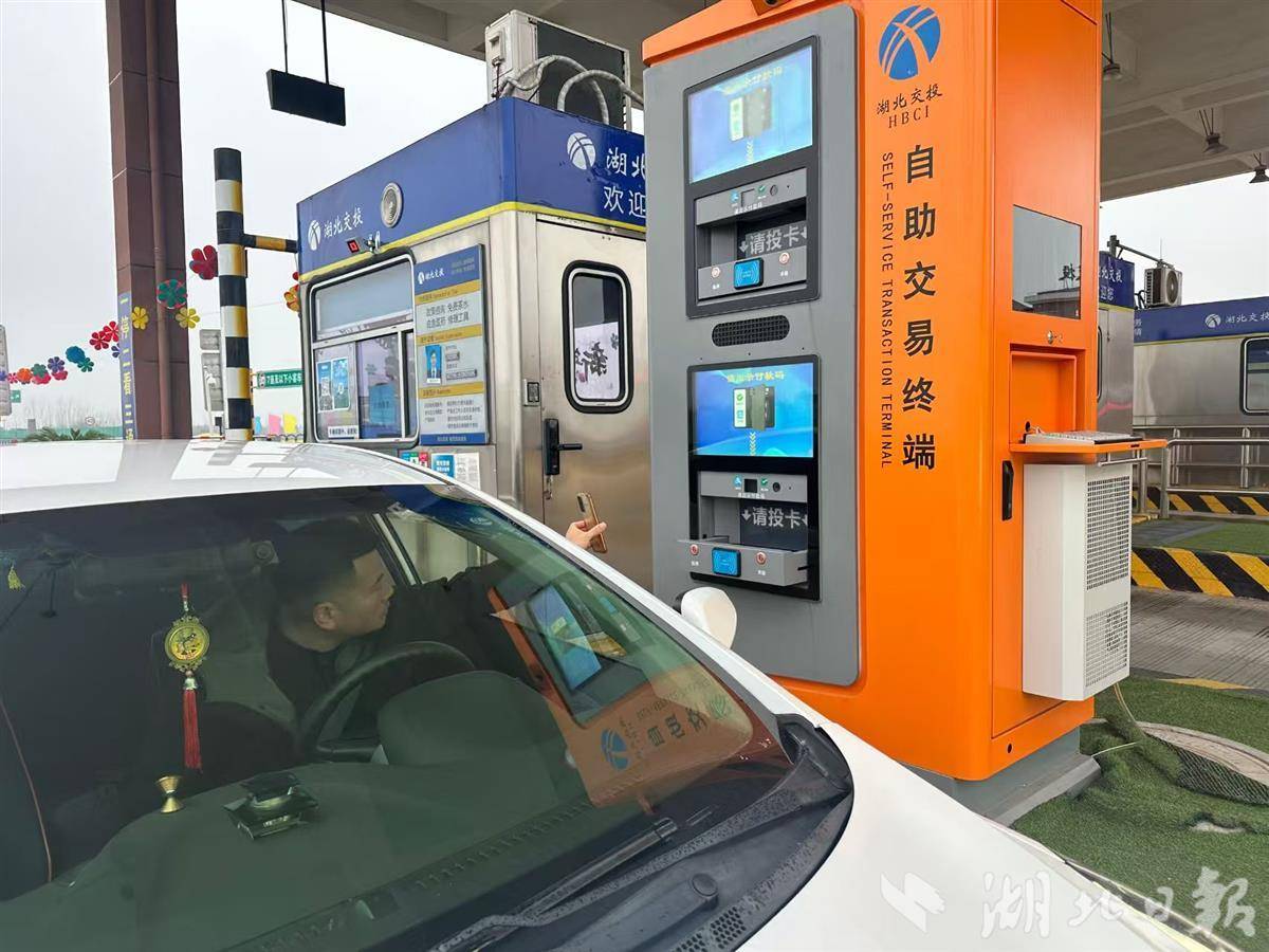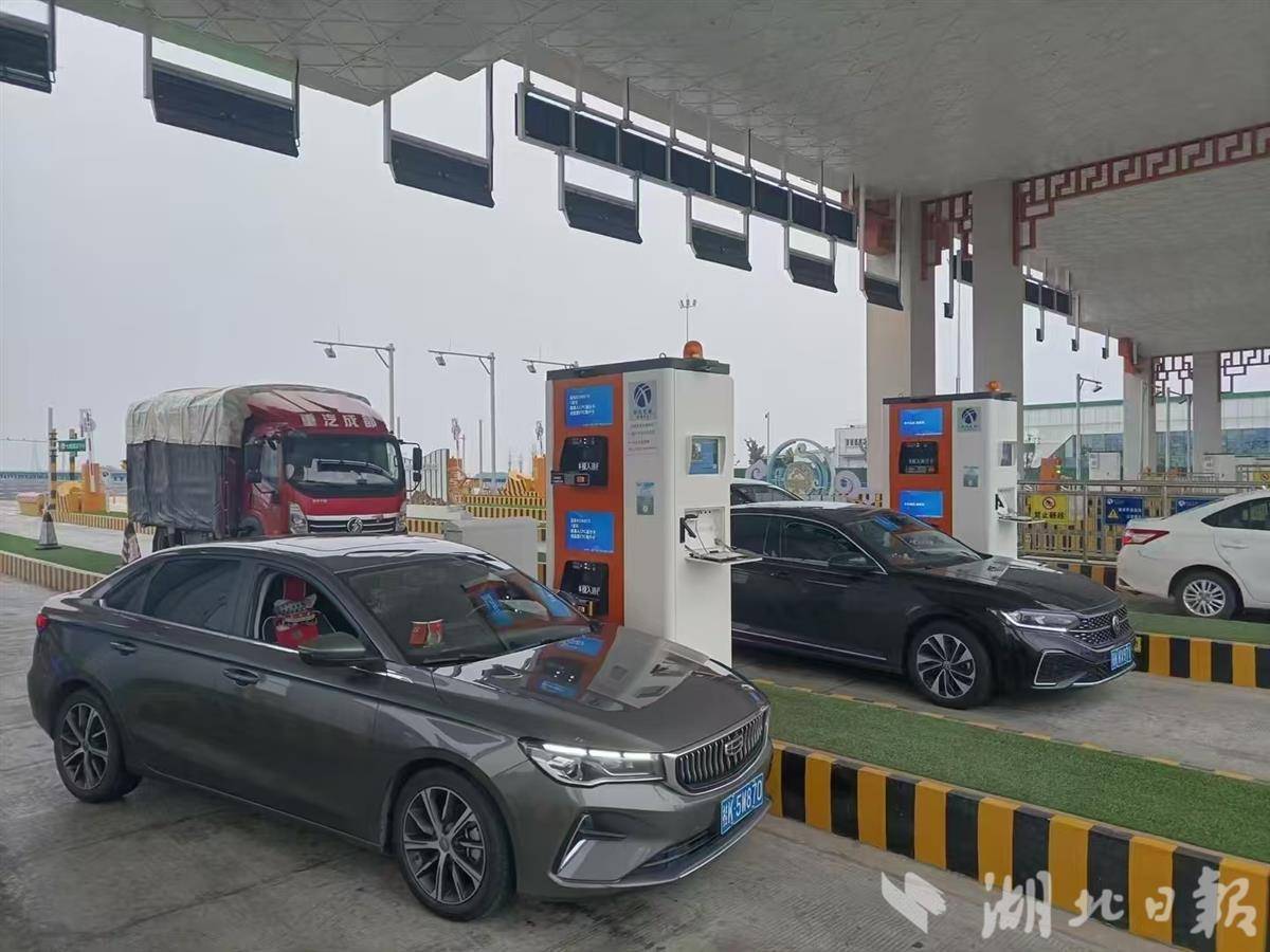 自助通过收费机器人缴费后,车辆通行孝感东收费站。(通讯员 乔馨妍 摄)