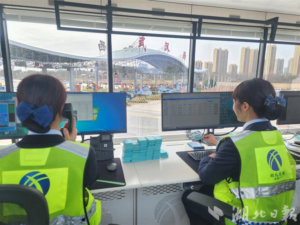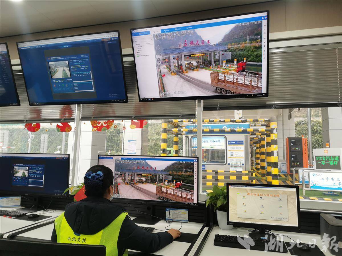 京珠运营公司武汉西收费站工作人员在智慧云舱内实时监测春运情况。(通讯员 杨昆 摄)