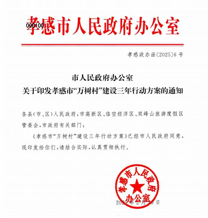 根据2月20日印发的《孝感市“万树村”建设三年行动方案》,孝感将按照宜林则林、宜草则草、宜湿则湿的原则,结合平原村、丘陵村、山区村等实际特点,在全市城镇社区以外的建制村及农村社区开展“万树村”建设,2025年、2026年、2027年将分别建设“万树村”700个、587个、527个。