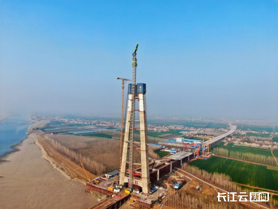 连接荆州江陵与公安的武松高速观音寺长江大桥项目,北岸的主塔日前已突破200米的建设大关,正向着封顶阶段进行最后的冲刺,预计上半年前完成主塔的整体封顶。