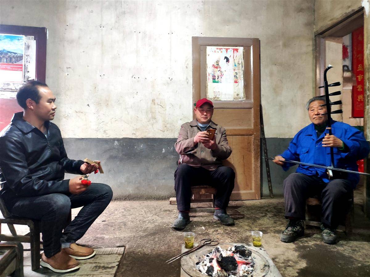 陈中祥拿起潘良双新买的四弦胡琴,调了一下音准,脚踏节拍,右手拉弓,左手按弦,边拉边唱《文王访贤》片段。
