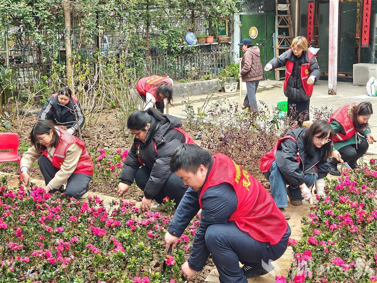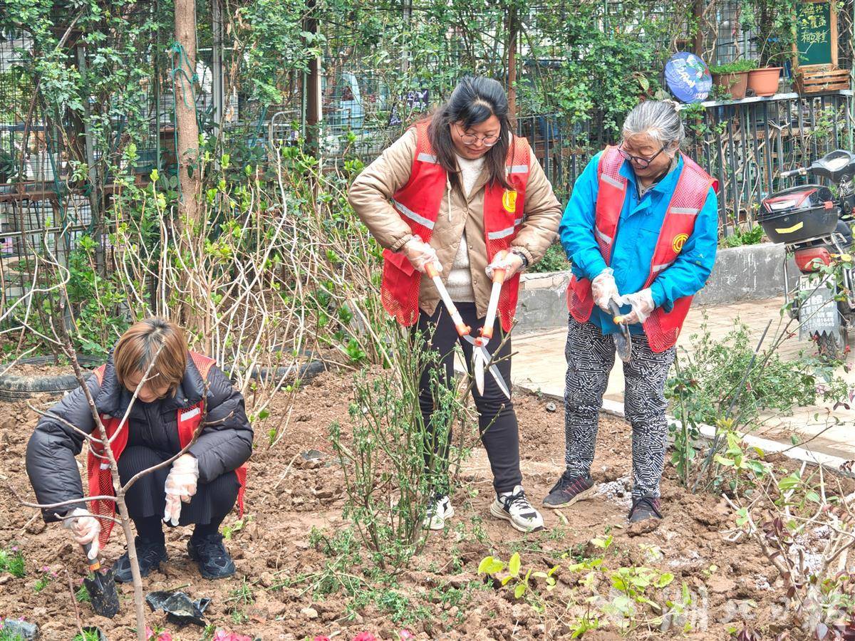 社区“花友会”的志愿者李阿姨一边给“友邻”工会小组的组员进行示范,一边详细讲解种植方法。在她的带领下,参与活动的工会成员和居民三三两两散开,大家分工明确、行动默契,这边负责挖坑,那边负责把花苗植入坑中。大家合力栽下了近百棵花苗和灌木,鲜红和翠绿交相辉映,为小区增添了一片绿意盎然的美丽景观。