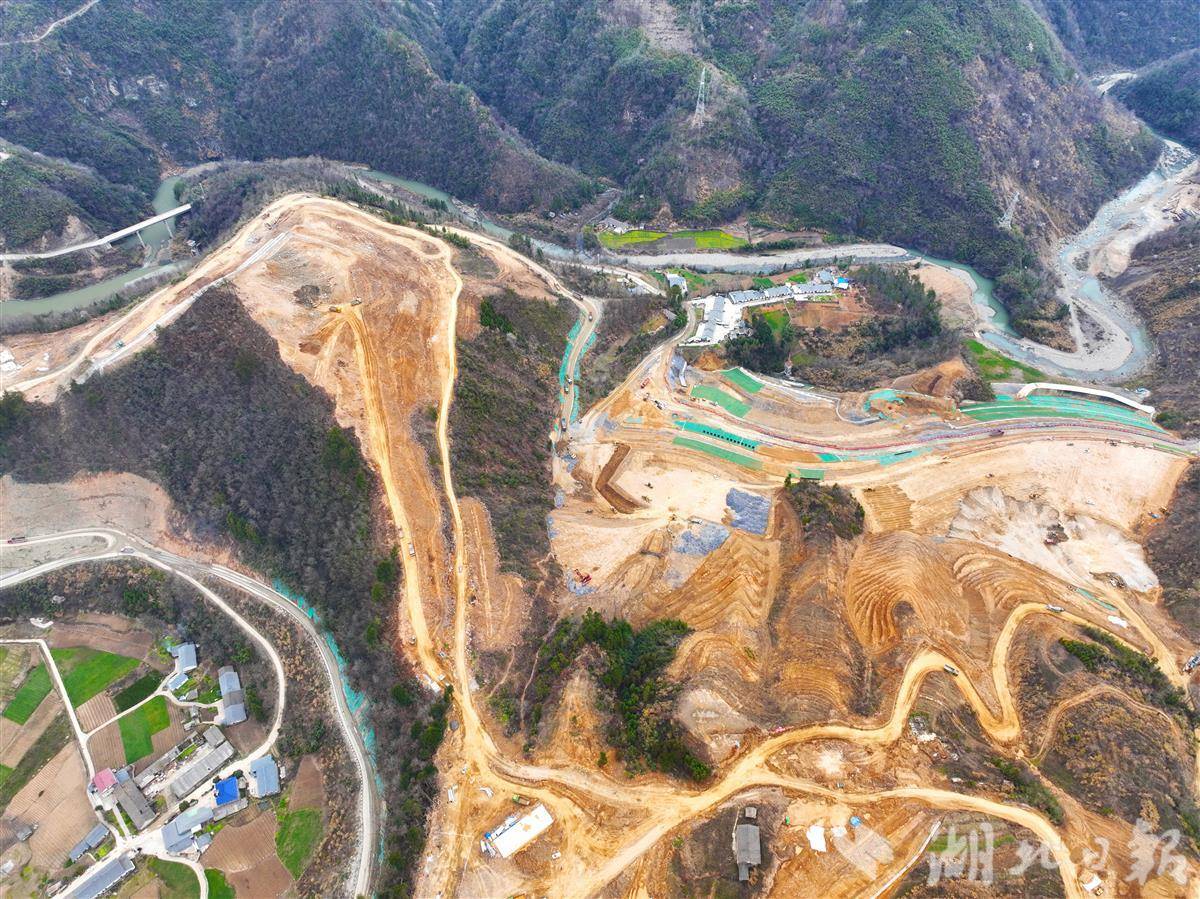 3月13日,位于竹溪县丰溪镇的十巫南高速丰溪互通正在加紧建设,这是湖北在建难度最大的最高边坡互通,堪称湖北高速公路边坡落差的“天花板”。