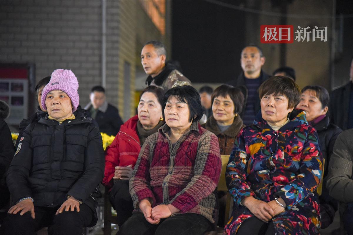 3月13日晚,在公安县狮子口文体服务中心的雷元坤灵堂前,乡亲们神情凝重,他们遵照老文化站站长遗愿,以观看电影的形式与雷元坤告别(极目新闻记者 黄志刚 摄)