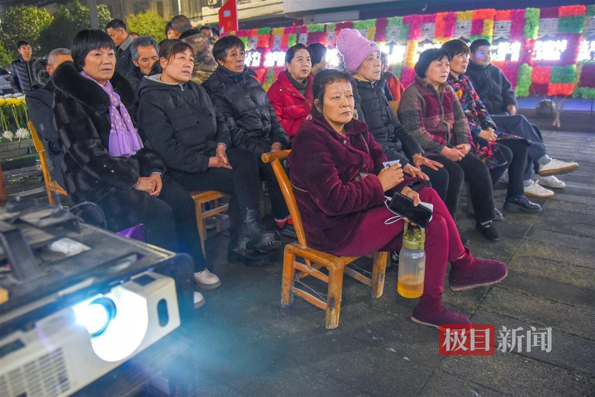 3月13日晚,在公安县狮子口文体服务中心的雷元坤灵堂前,乡亲们以观看电影的形式与老文化站站长告别(极目新闻记者 黄志刚 摄)
