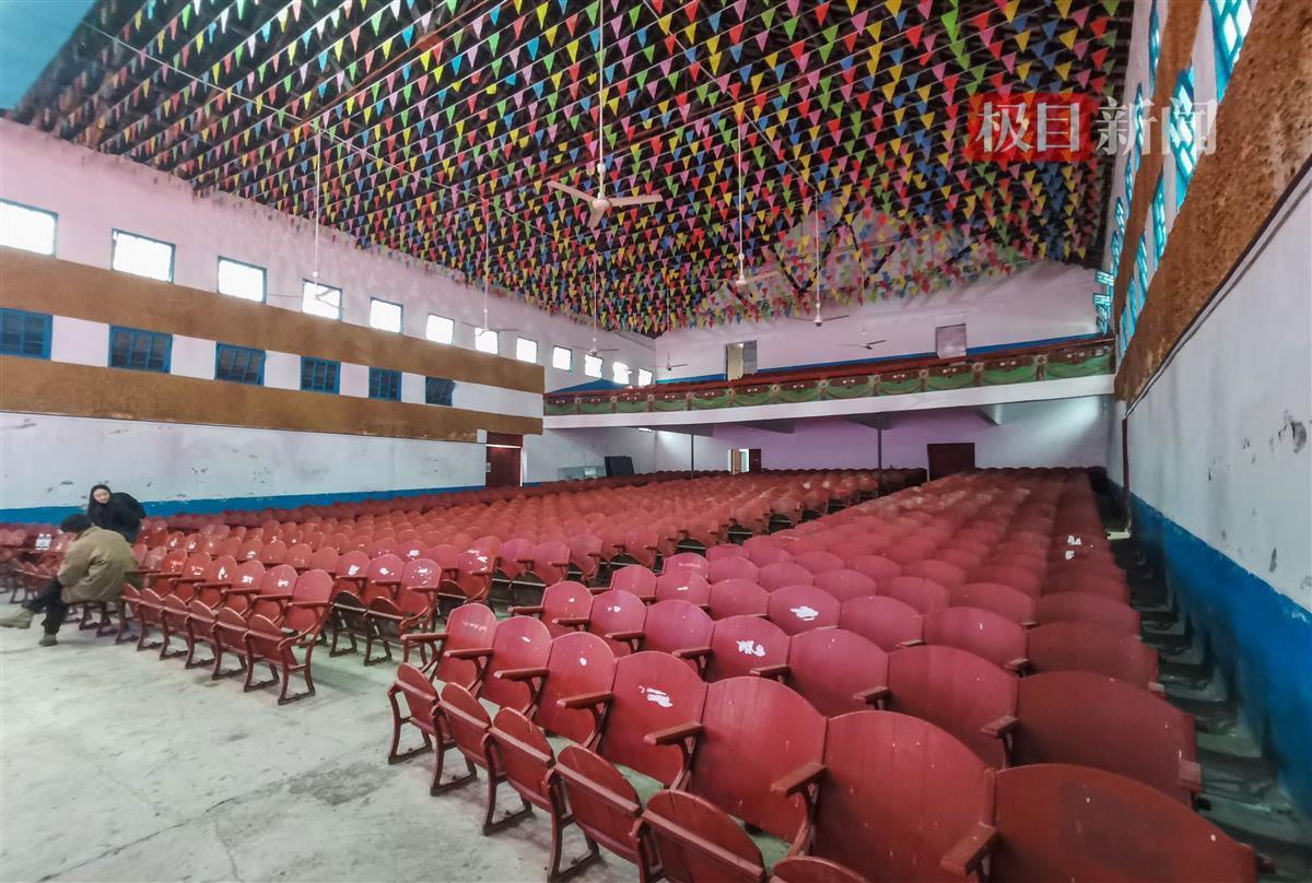 极目新闻记者走过文化站主楼,便进入了一座可容纳近千人的大剧场,钢架结构搭配木条支撑的穹顶和翻折式木质座椅尽显年代感。“全县这样的老剧院不多了哟。”狮子口镇一位年长居民刘先生说。