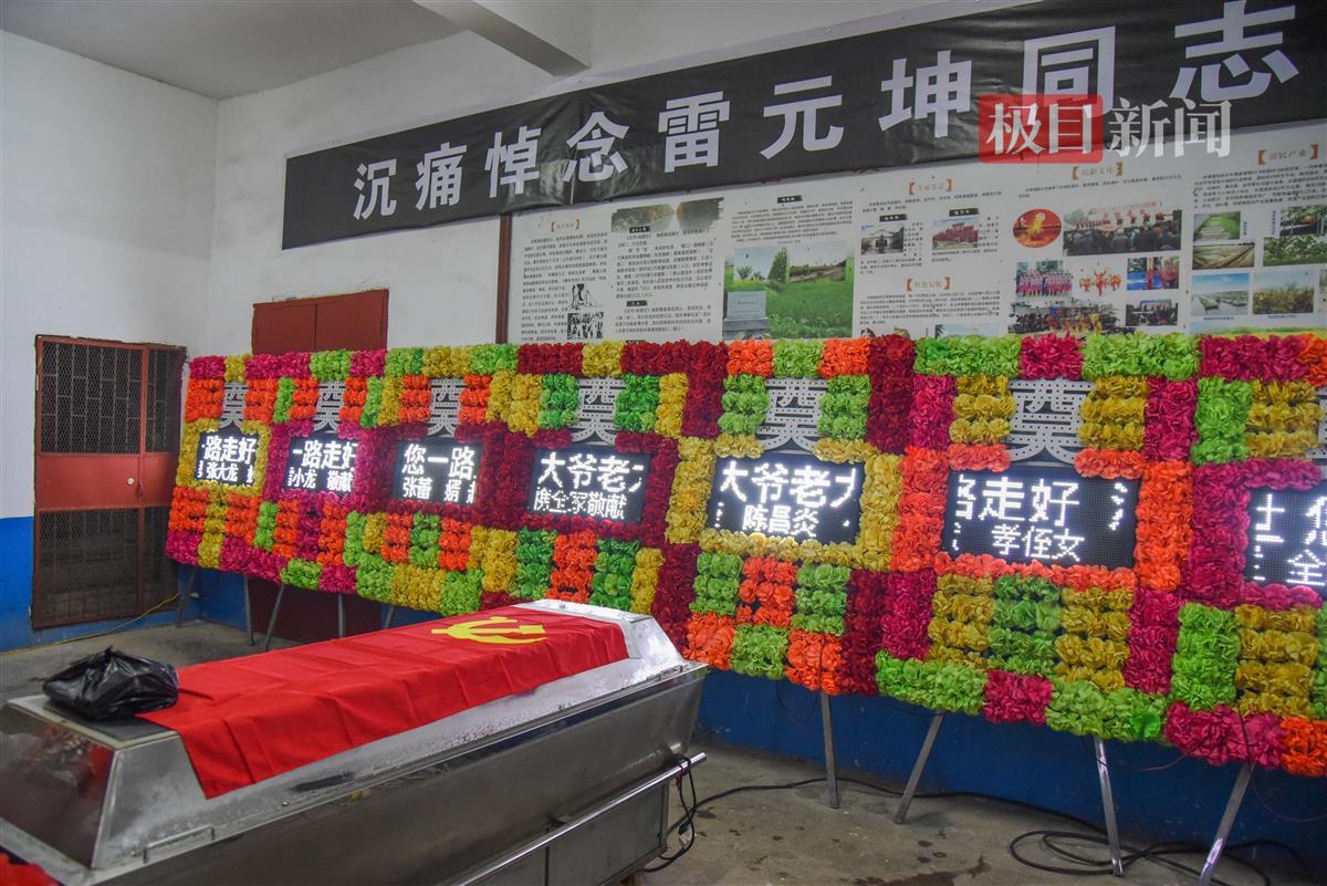 当天凌晨3时许,身患胃癌的雷元坤将生命定格在70周岁。放一场电影与乡亲们告别,这是他生前对儿女们的唯一嘱托。悼念现场,简朴的装扮显得庄严肃穆。灵堂中央,鲜艳的党旗覆盖在雷元坤的遗体上。