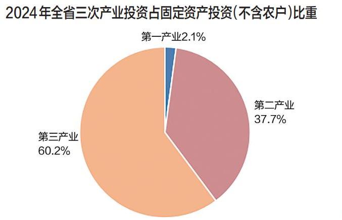 全年全省完成固定资产投资(不含农户)比上年增长6.5%。按产业划分,一、二、三次产业投资分别增长2.8%、14.7%、2.1%。分领域看,工业投资、基础设施投资、房地产开发投资增速分别为14.7%、9.8%、-5.9%。全省创新驱动发展成效显现,新动能新优势加快塑造,高技术产业投资增长16.7%,其中高技术制造业投资增长15.4%,高技术服务业投资增长20.5%。补短板强功能建设加快推进,铁路运输业投资、水利管理业投资分别增长23.4%、60.9%。