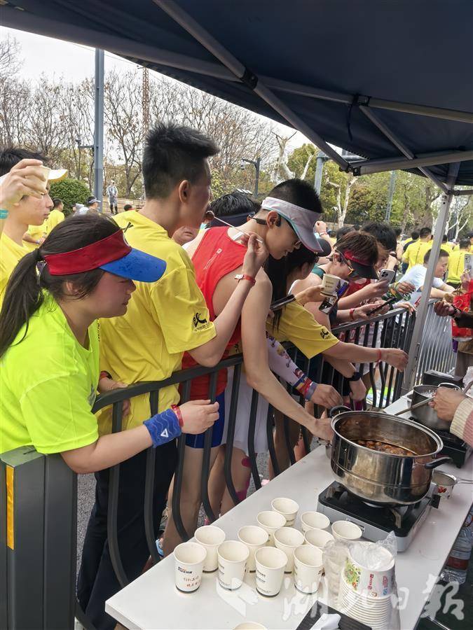 一位来自北京的女选手吃完后说:“太香了,不吃太亏了。”有选手更是笑称:“武汉马拉松的补给太丰富了,跑着跑着来喝咖啡,吃肉圆子、藕夹、牛肉,还怎么跑?”