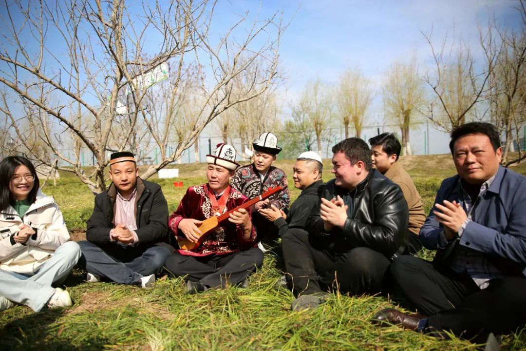 石榴树下,绿草如茵。阿布都加帕尔弹起心爱的库姆孜(一种柯尔克孜族弦乐器),唱起歌曲《我的党徽》——这是他在来武汉的路上突发灵感而创作的。