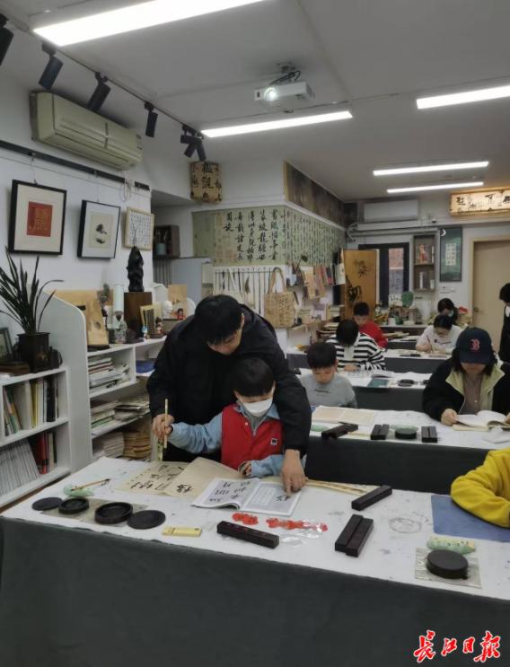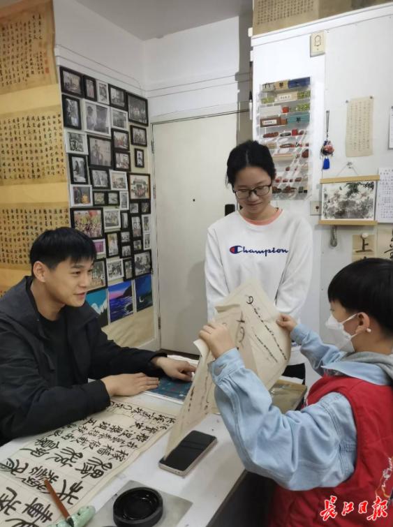 3月23日,记者见到了正在指导学员临帖的陈曌。学员李女士和女儿跟着陈曌学习了5年书法,看到学员们发自内心地喜欢书法,陈曌打心眼里高兴,因为,他实现了自己从小的梦想:以传授书法为乐,能以传授书法为生。