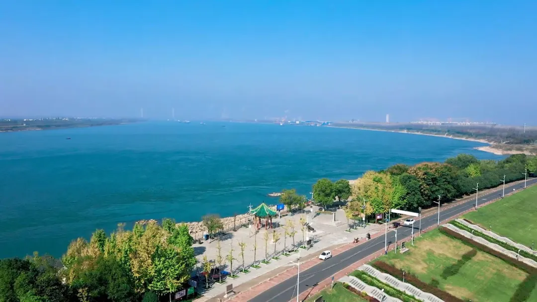 漫步在荆江大堤,蜿蜒的路面掩映在树林之中,耳畔是风与浪的和鸣,放眼望去江、滩、堤、城浑然一体。