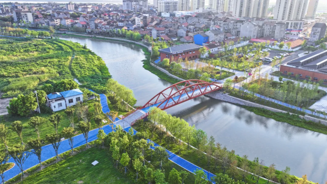 10.5公里内荆河,茂盛苍翠的绿树展开枝叶伸向步道,留下片片荫凉,绿道旁设有健身驿站,满足不同年龄段的市民健身需求,成为江陵城市美好生活的体验空间。