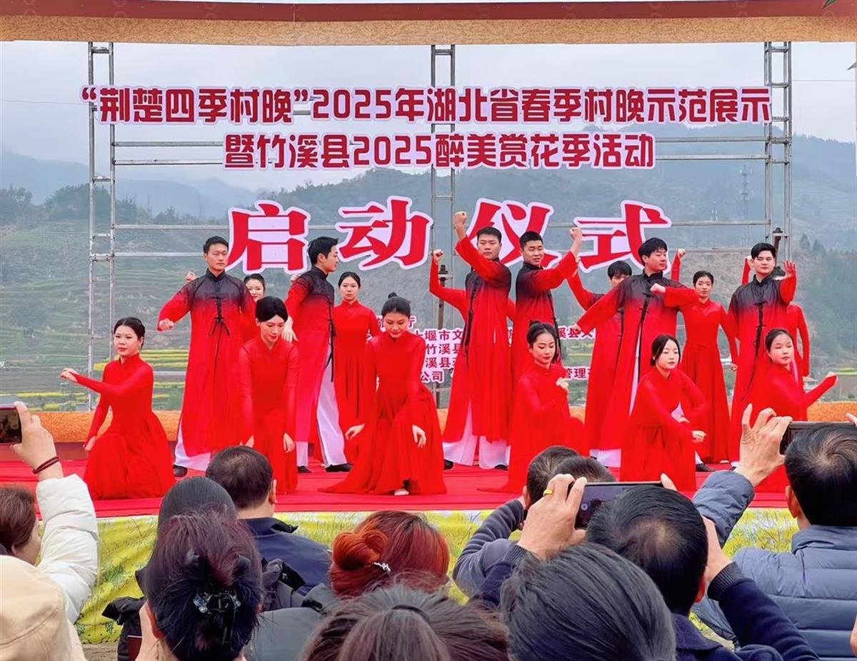 本次活动由湖北省文化和旅游厅指导,省群众艺术馆、十堰市文旅局、竹溪县政府联合主办,以“游醉美花海、看四季村晚、品乡村美食、赏非遗大戏”为主题,整合竹溪生态资源与文化IP,打造 “文旅+农业+非遗”的多元消费场景。