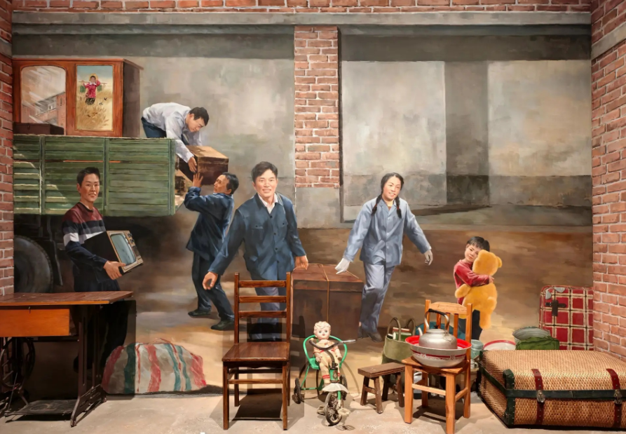 第二汽车制造厂(东风汽车集团有限公司前身)在十堰奠基来自四面八方的创业者们坚定“打汽车工业翻身仗”的信念,凭借“马灯精神”,以干打垒、芦席棚为宿,克服了道路涉水及桥梁受限等重重困难,通过人拉肩扛,建起了汽车制造厂。