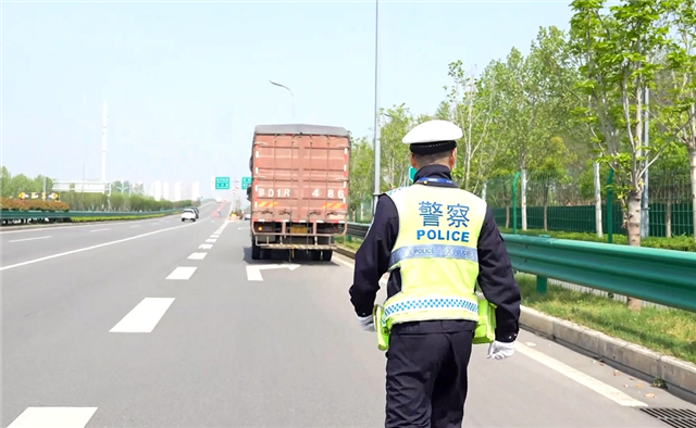 随后,民警在复兴大道豉湖路路段值守,发现一辆大货车违规通行,民现场拦截。
