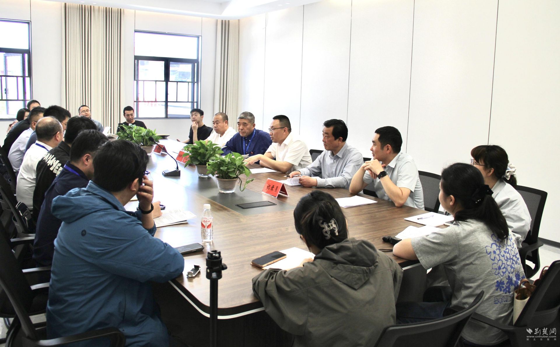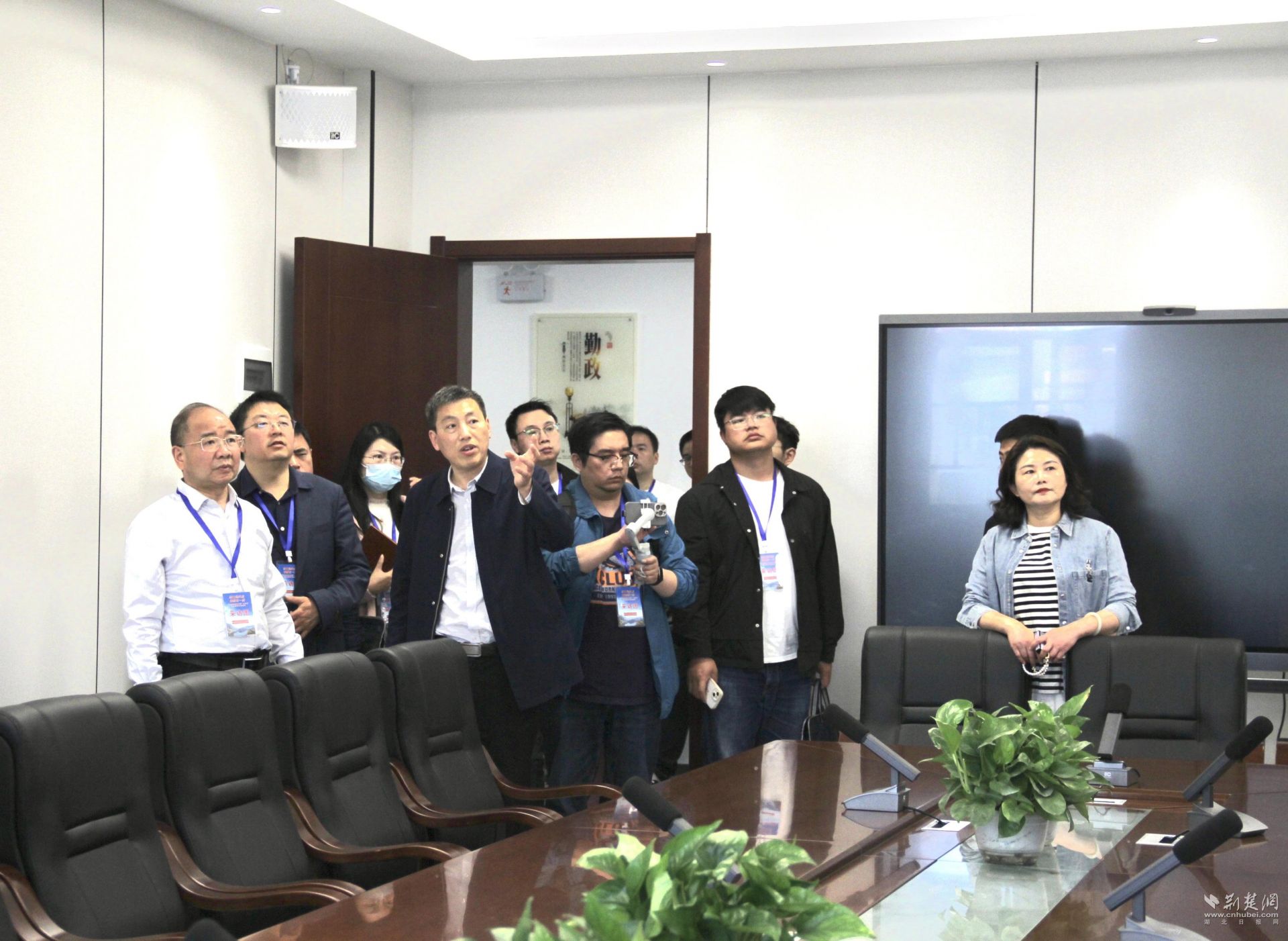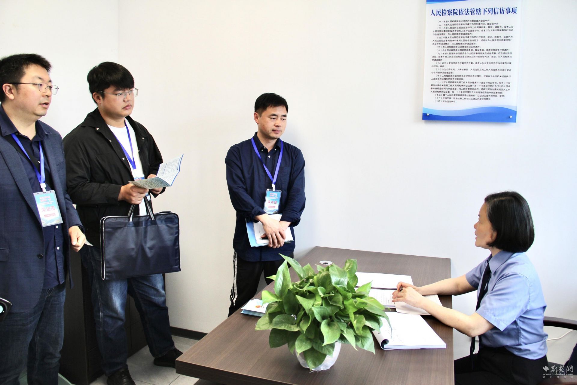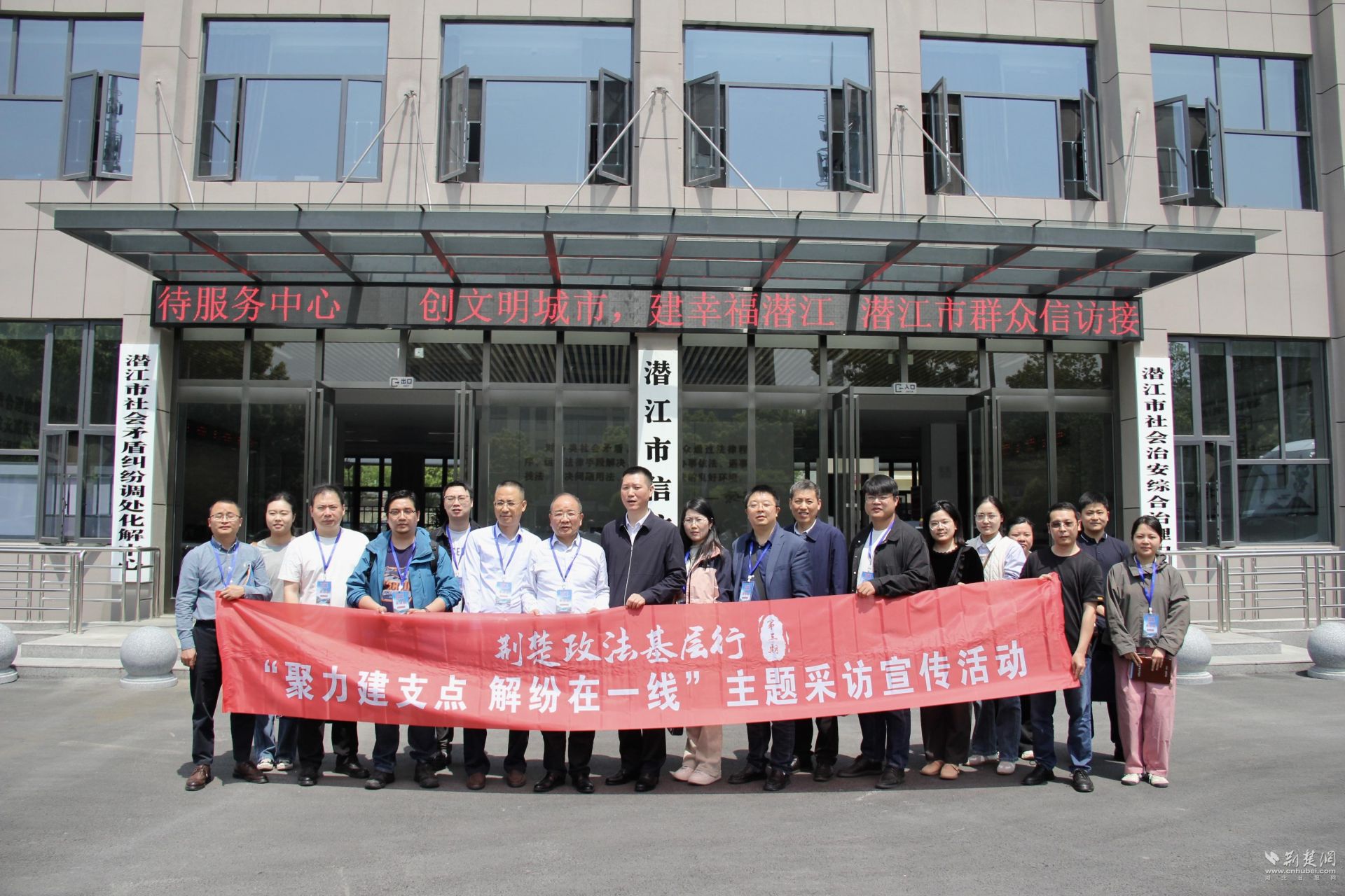 采访团在潜江市综治中心采访。记者 周光洁 摄