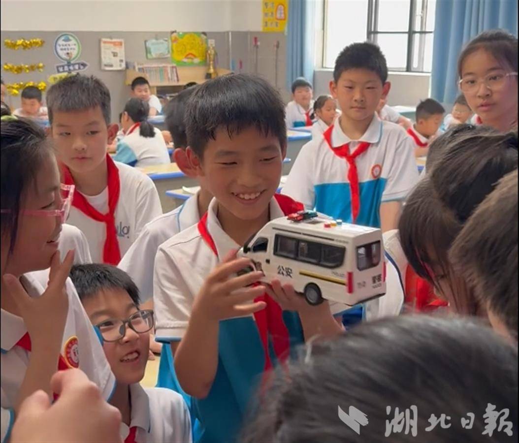 民警还为卢晨鑫、卢晨希送去警车模型,鼓励大家学习榜样、心怀正义。同学们传阅兄弟俩的奖状,纷纷向他们竖起大拇指:“你们真棒!”
