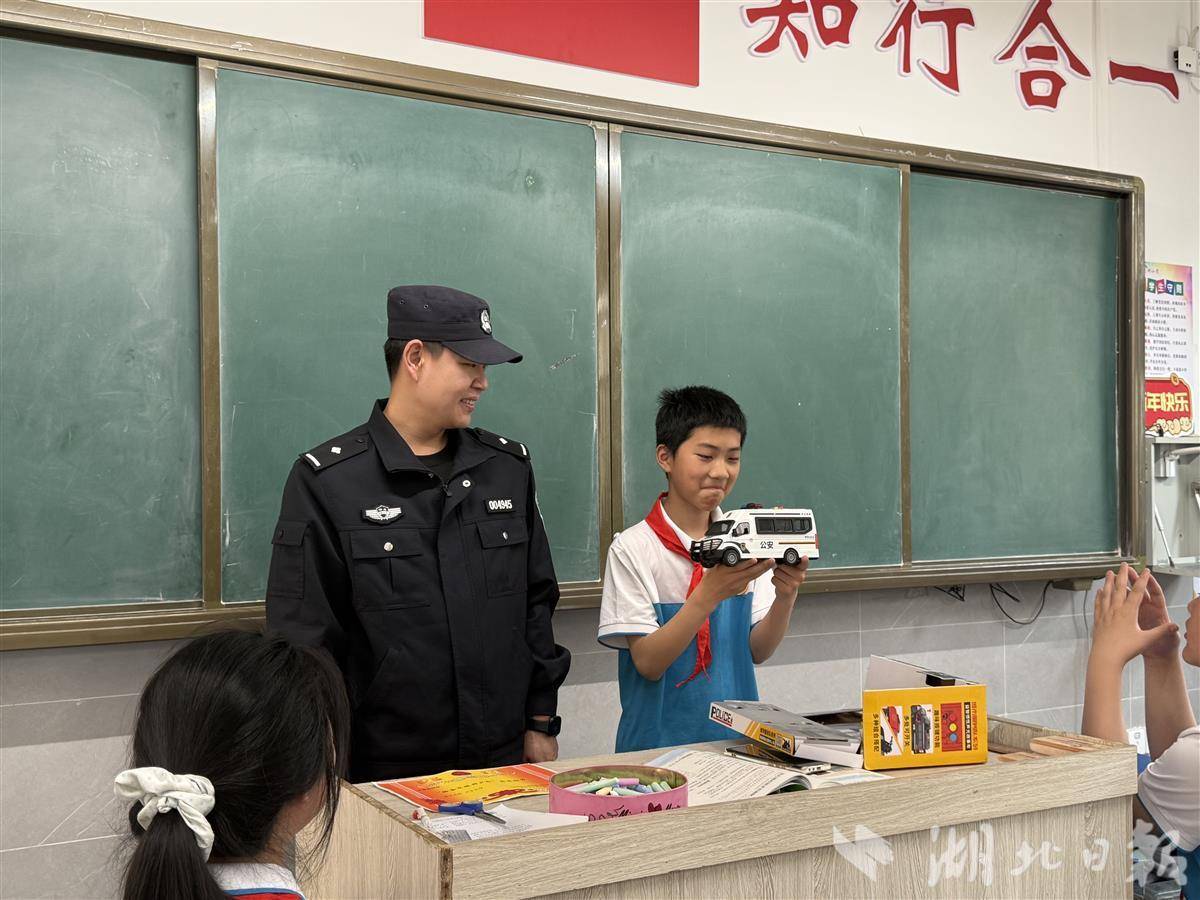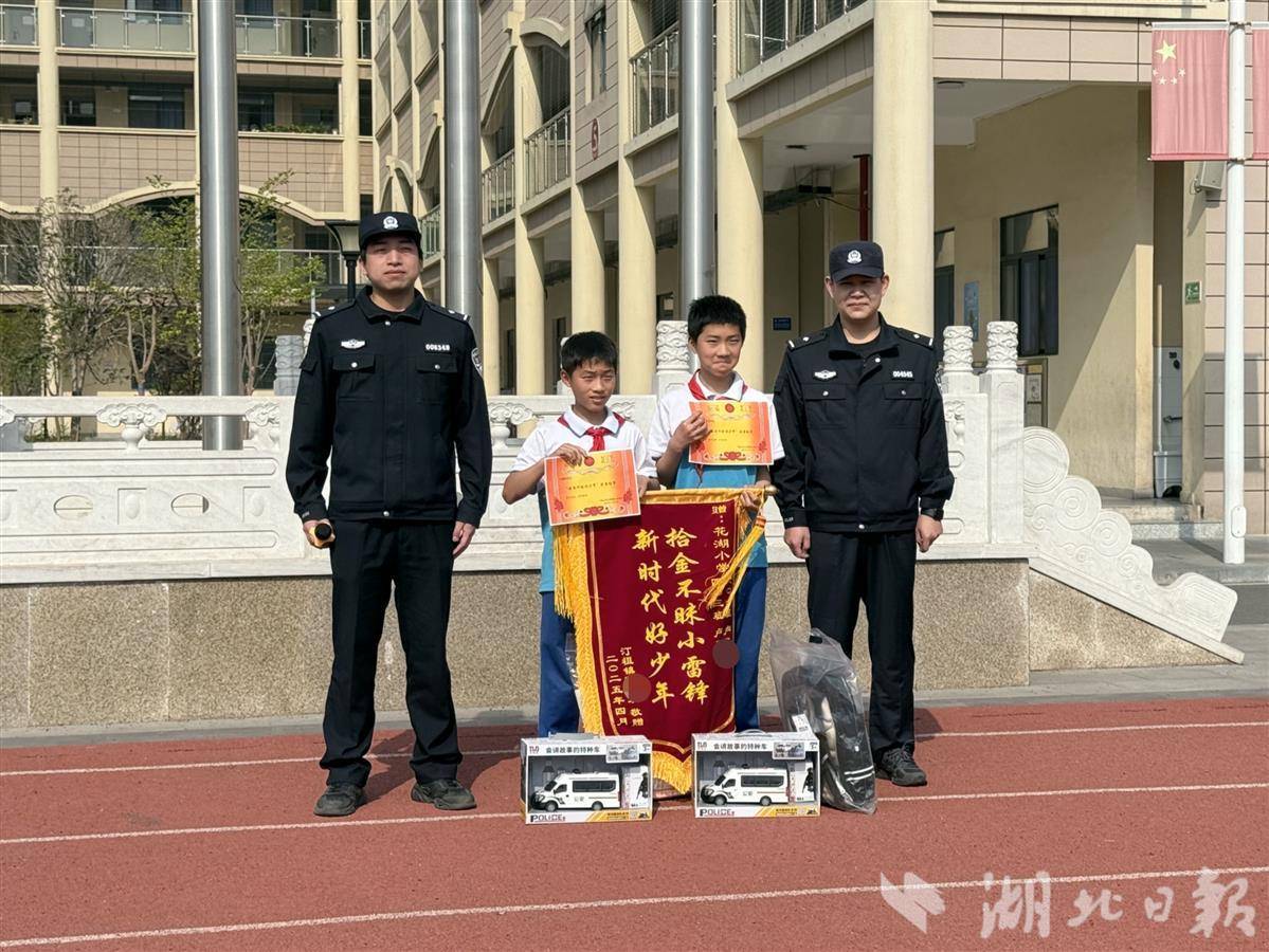湖北日报讯(通讯员龚轩)4月9日,黄石市公安局下陆区分局团城山派出所民警走进黄石市花湖小学,为该校学生卢晨鑫、卢晨希举办了一个特别的“颁奖仪式”。