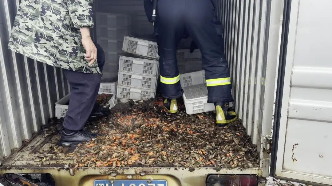 车上共装有1500斤龙虾苗