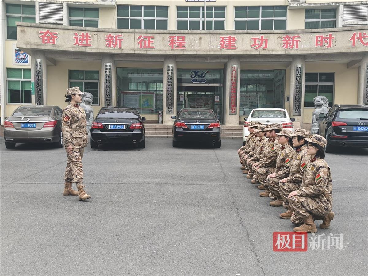金华街道女子民兵班成立于2024年,现有10人。梁梦霞是班长,她2013年参军入伍,曾服役于海军陆战队某部,2018年退役。怀揣着一颗像花木兰一样建功立业的心,这些来自不同行业的女民兵们组成了一个集体。