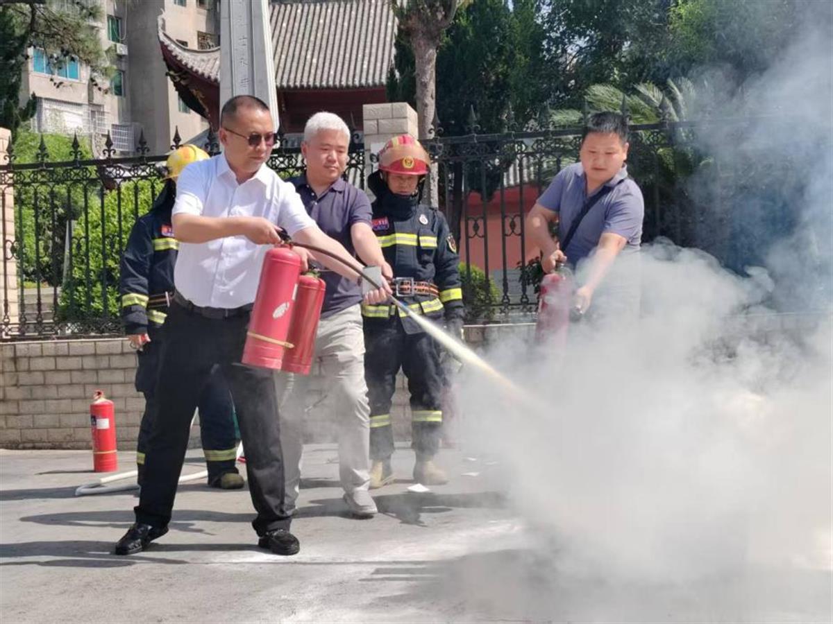 理论与实操相结合,提升应急处置能力。消防宣传人员组织文庙工作人员、安保人员及周边居民开展专题培训,结合近年来文物古建火灾案例,详细讲解初期火灾扑救、疏散逃生技巧及文物转移流程。现场演示了灭火器、消防水带等器材使用方法,并指导参训人员进行实操演练。