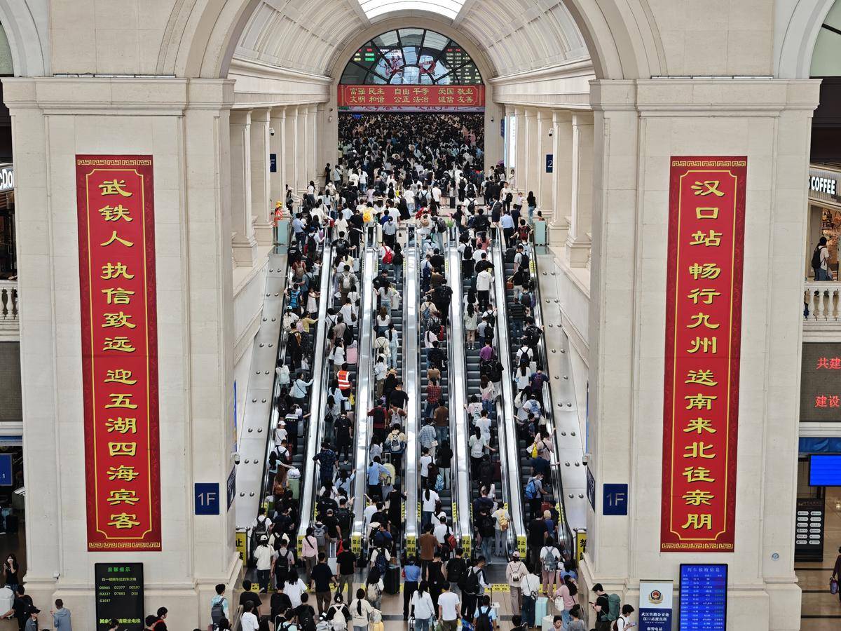 5月1日当天,汉口站单日发送旅客突破22.4万人次,突破2024年10月1日发送人22.3万人次纪录,创下历史单日发送人新高。