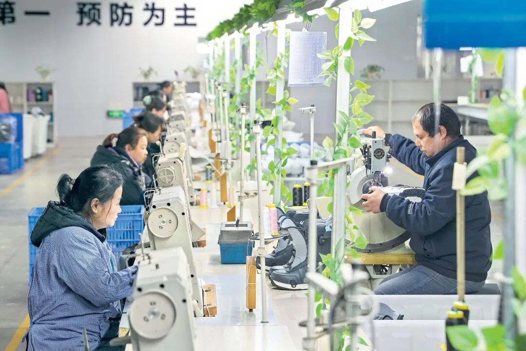 湖北翔驰运动用品股份有限公司生产车间。(记者肖琦 张梦瑶 通讯员王文初摄)
