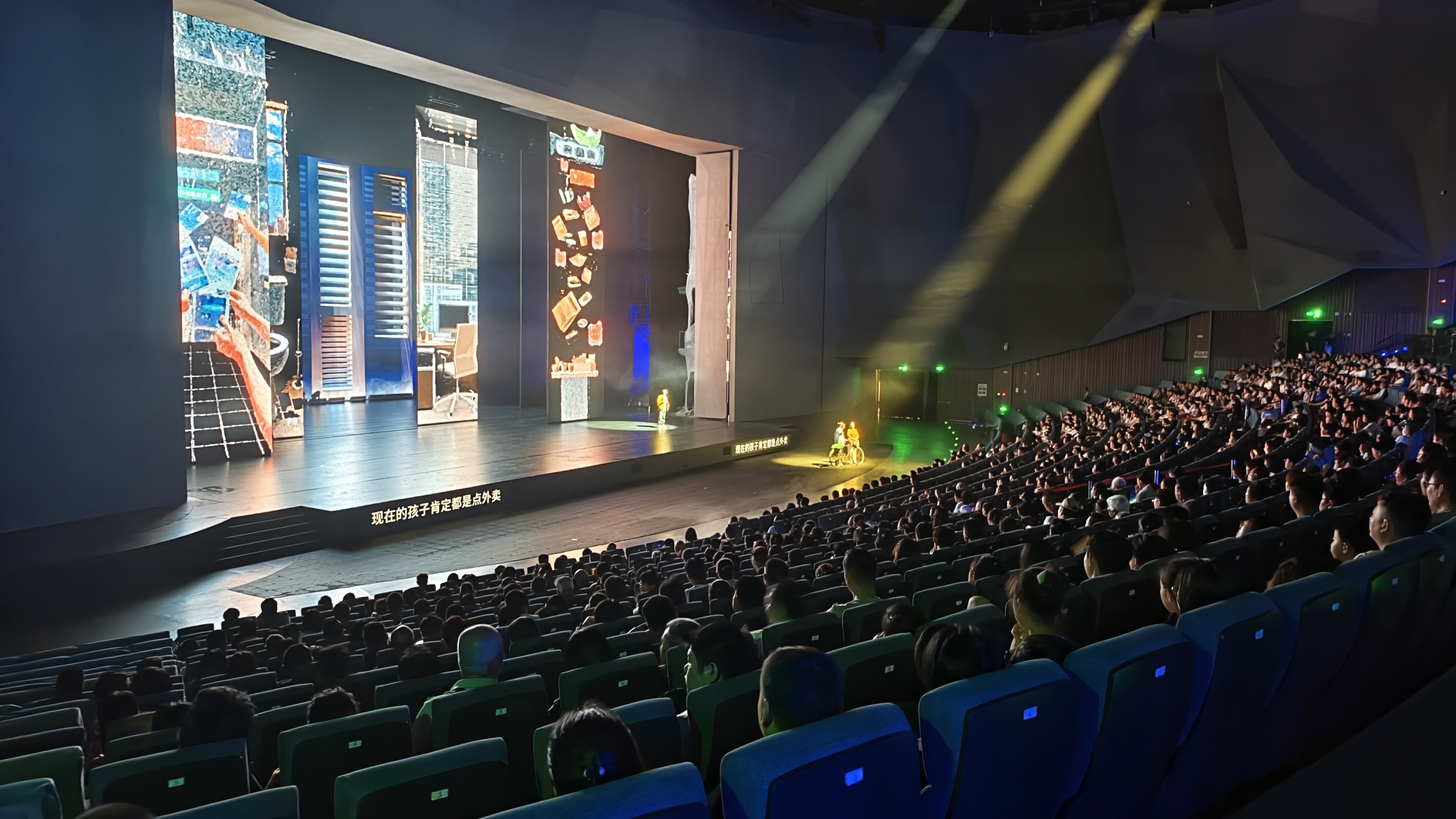 剧场内,20台4K投影机两两叠加,形成19000倍高清像素的视觉空间,配合60米主舞台与40米旋转延展台,构建出270°超广角影像世界。全息屏、轨道屏与纱幕交织,将武当传说、太极玄机、仙山云海等场景以裸眼3D效果呈现。