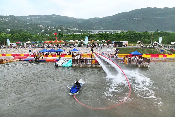 岸上,水上游乐嘉年华、亲子游乐园嘉年华、神农美食荟等活动精彩纷呈,成了欢乐海洋。轰鸣的引擎声中,酷炫机车驶入表演场地,专业骑手展示高超车技,腾空飞跃、高速疾驰,惊险表演赢得阵阵欢呼,为神农湖增添动感活力。