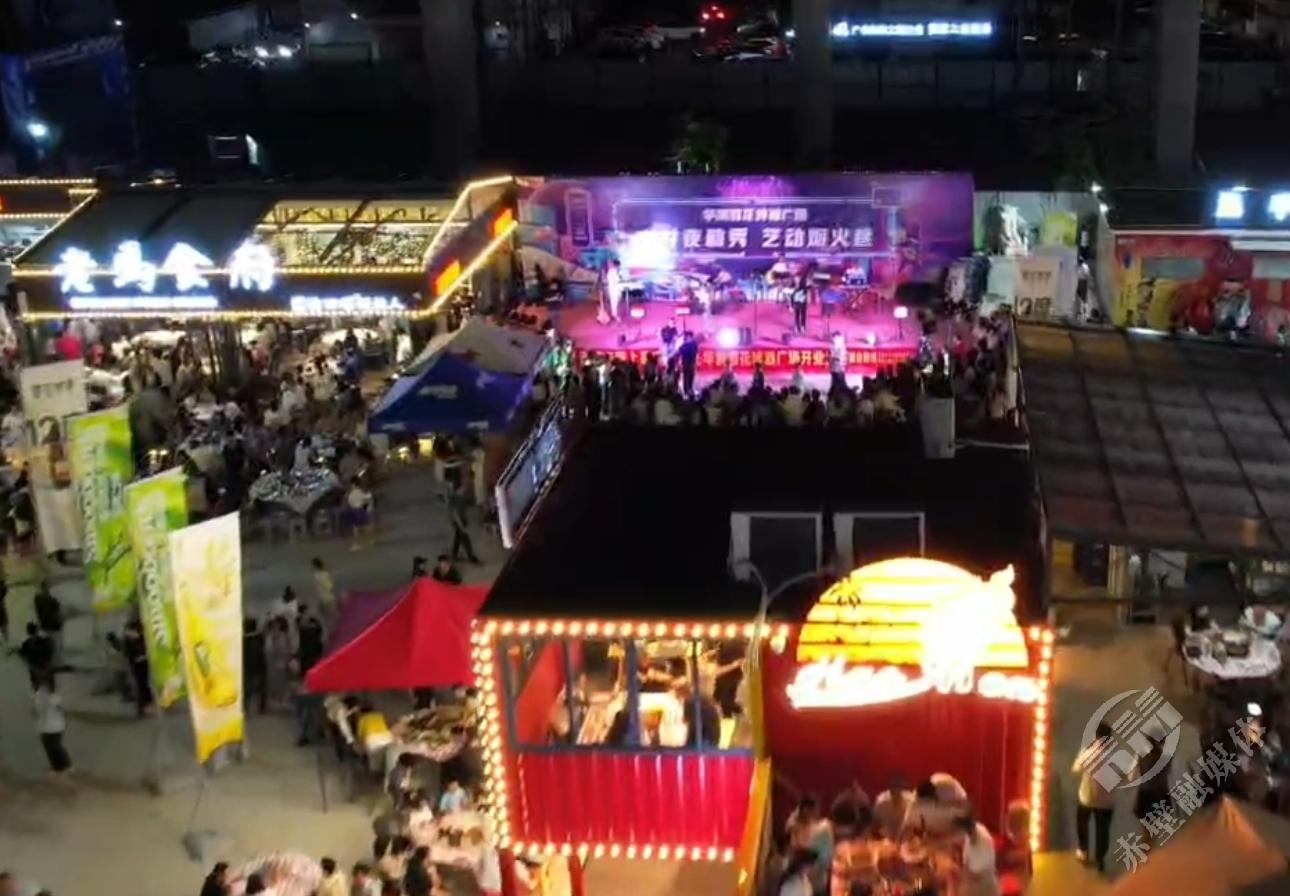 夜幕降临,“华润雪花啤酒广场”各类独具特色的灯逐渐亮起,动感音乐环绕在“广场”上空,精彩活动轮番上演,特色小吃、烧烤、龙虾等美食散发着诱人的香气,吸引不少食客前来打卡,迫不及待地品尝各店招牌美食。