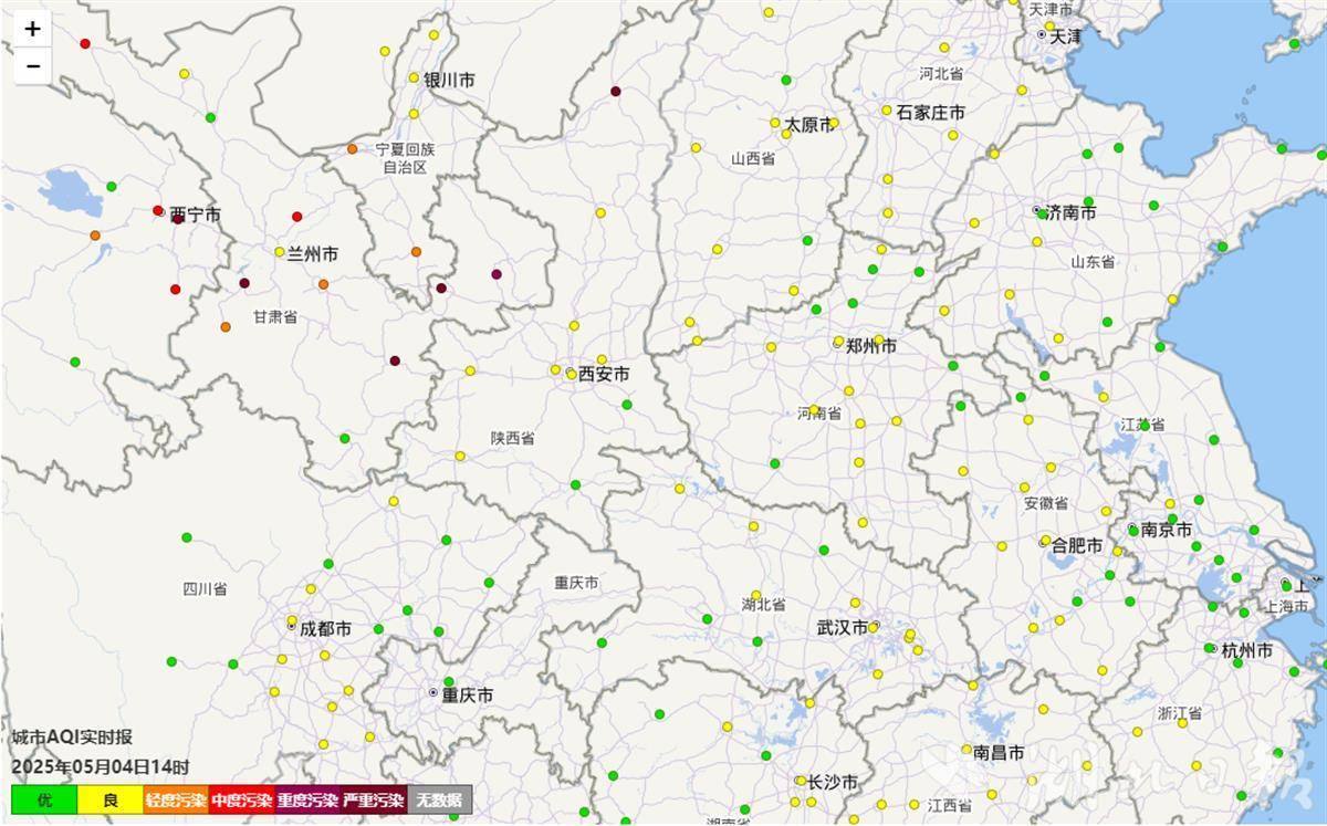 根据中央气象台5月4日沙尘暴蓝色预警和中国环境监测总站预测,截至5月4日14时,陕甘宁一带已有6个城市出现PM10重度到严重污染。随着4日至5日冷空气南下,部分沙尘将越过秦岭—淮河一线进入南方。