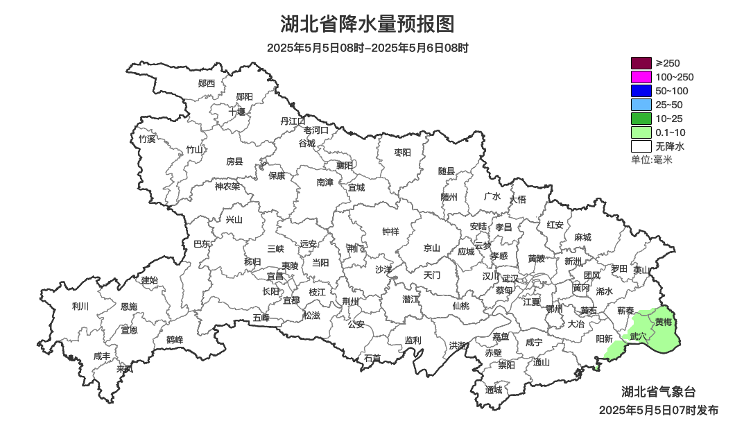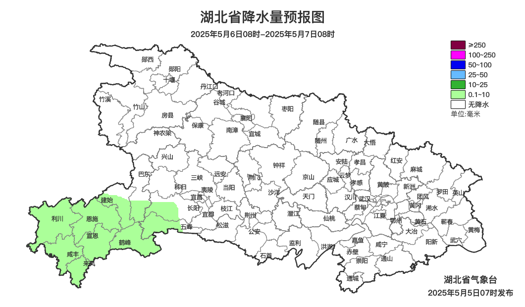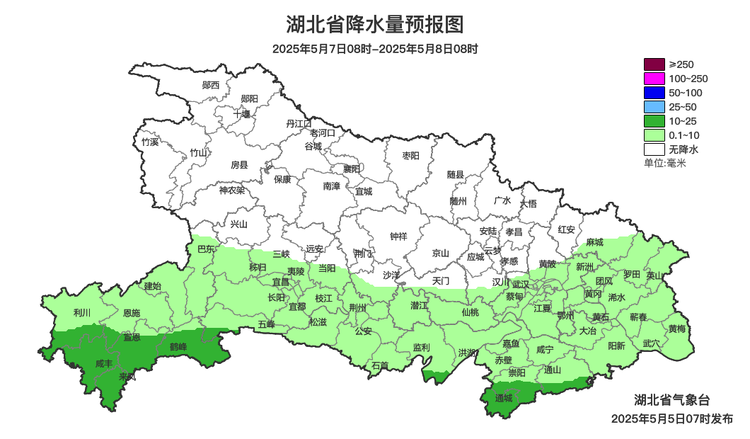 预报来源:湖北省气象台2025年5月5日08时预报