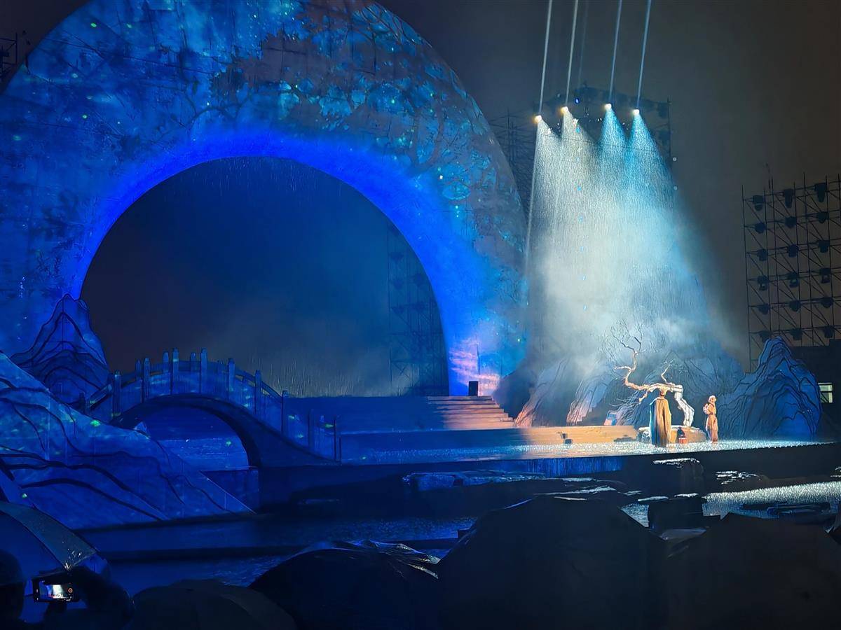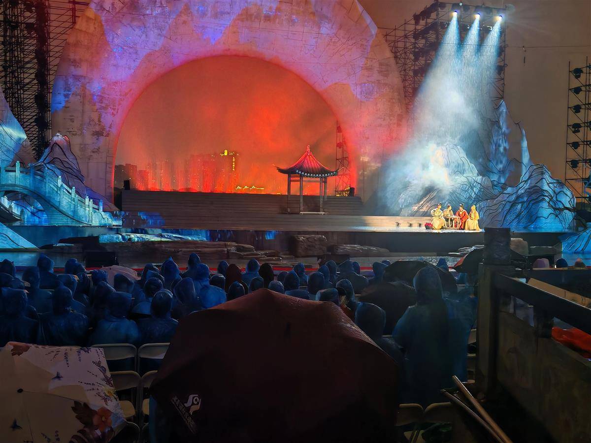 21时30分,演员们再次登台,雨水混着汗水流下面颊,无人机阵列在雨幕中勾勒出“一蓑烟雨任平生”的光影,观众席爆发出雷鸣般的掌声。演出尾声千人齐诵《定风波》,奇迹般雨声渐歇,唯有掌声经久不息。