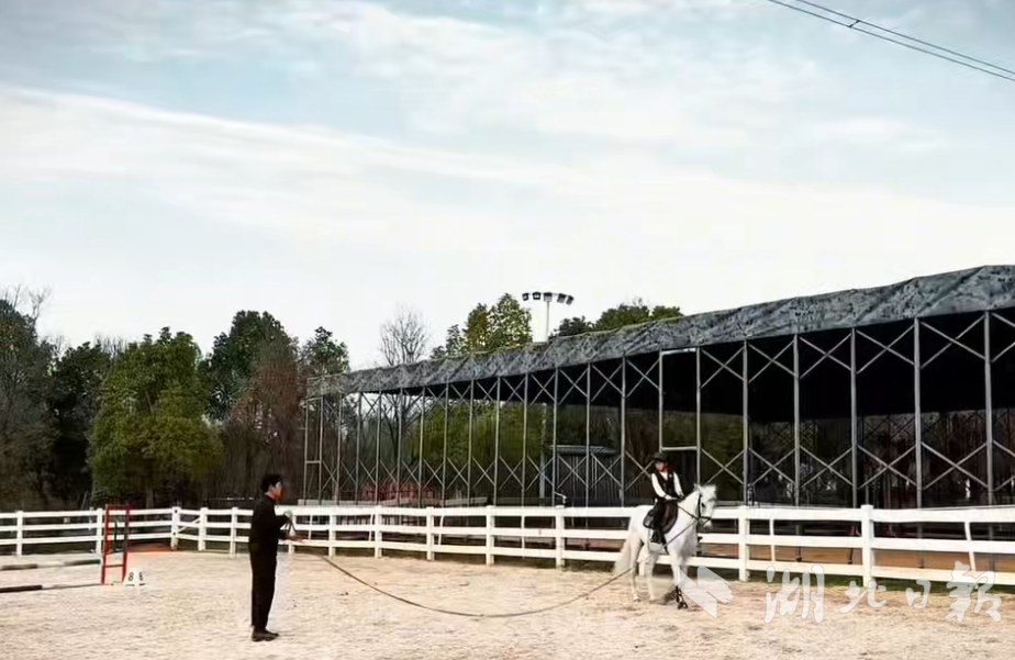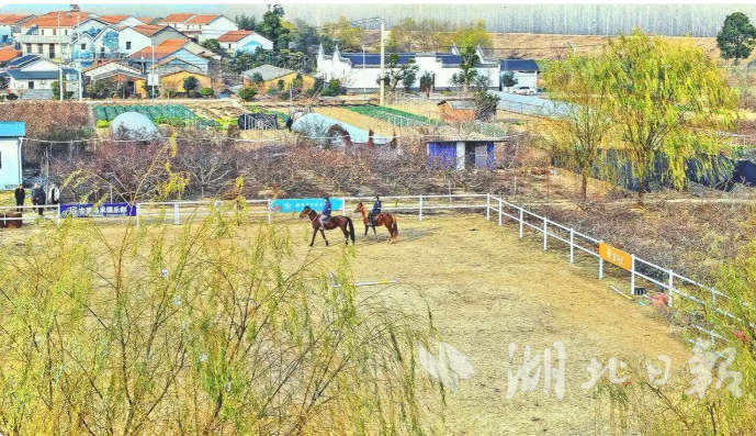 穿行于小镇村舍阡陌之间,一座充满自然元素的跑马场点缀其中,游客们奔驰在田园中,尽情在马背上放飞身心。这是位于新洲区邾城街巴徐村的“左罗马术俱乐部”运动体验的场景。该俱乐部于2024年3月营业,已经积累了不少人气。月均游客过2000人,为乡村旅游提供了新动能。